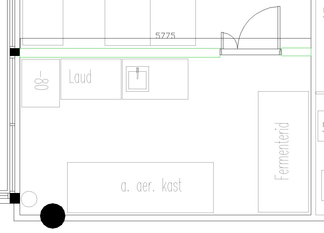 1) Ehitada rohelisega märgitud sein vt. Joonis. Sein topelt kipsist. NB! Sein peab õhukindlalt ulatuma laeni välja. Vent-torude ümbert tuleb sein ära tihendada vt pilt (1,2).