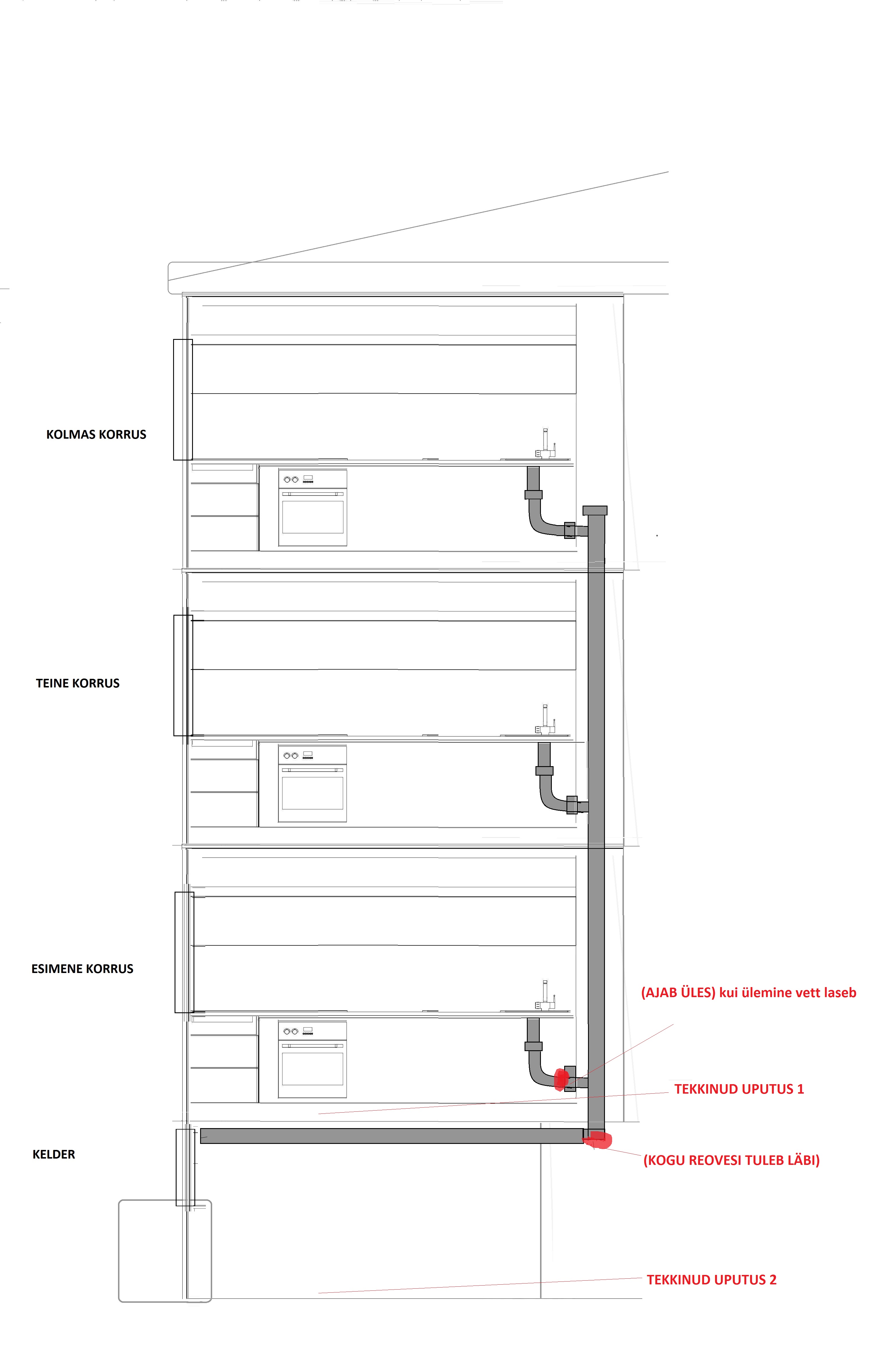 Kortermaja läbi kolme korruse köögi reovee toru vahetada läbi kolme korruse + kelder