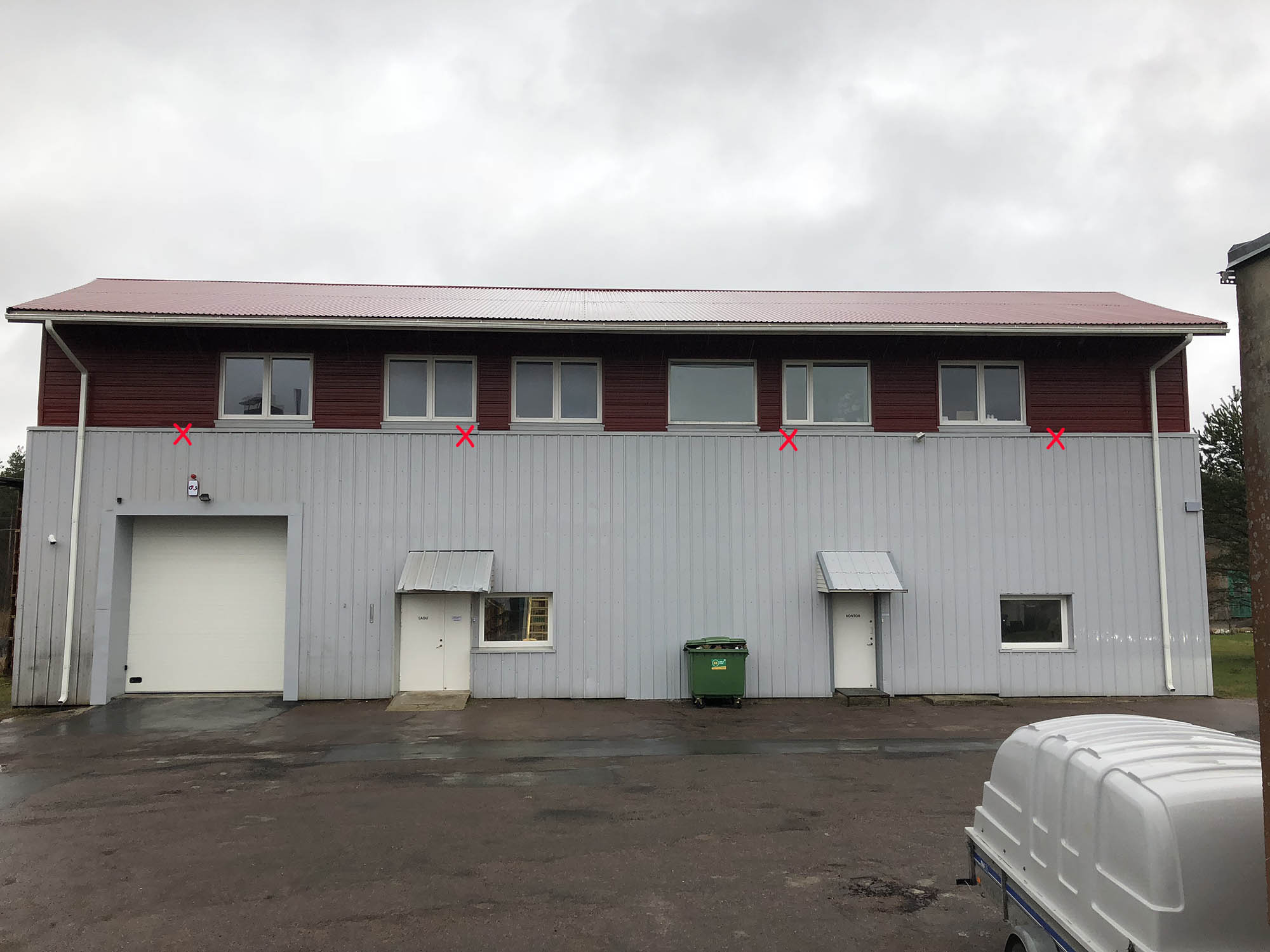 Hoone välisvalgustuse paigaldus. Vaja paigaldada 4x20W led valgustit hoone ette, 4x20W led valgustit maja taha, fasaadi külge. Umbkaudsed asukohat on märgitud fotodele punaste ristidega. Valgustite kõrgus maapinnast umbes 4,5-5m. Lisaks fasaadile kinnituvatele valgustitele on vaja paigaldada ka valgustid maja otstesse, maapinna sisse. Kumbagi maja otsa üks valgusti. Loomulikult on vaja teha ka sellega seonduvad kaabeldustööd. Elektri väljavõte on majaseina peal olemas. Materjalid (valgustiud ja kaabel) on olemas.