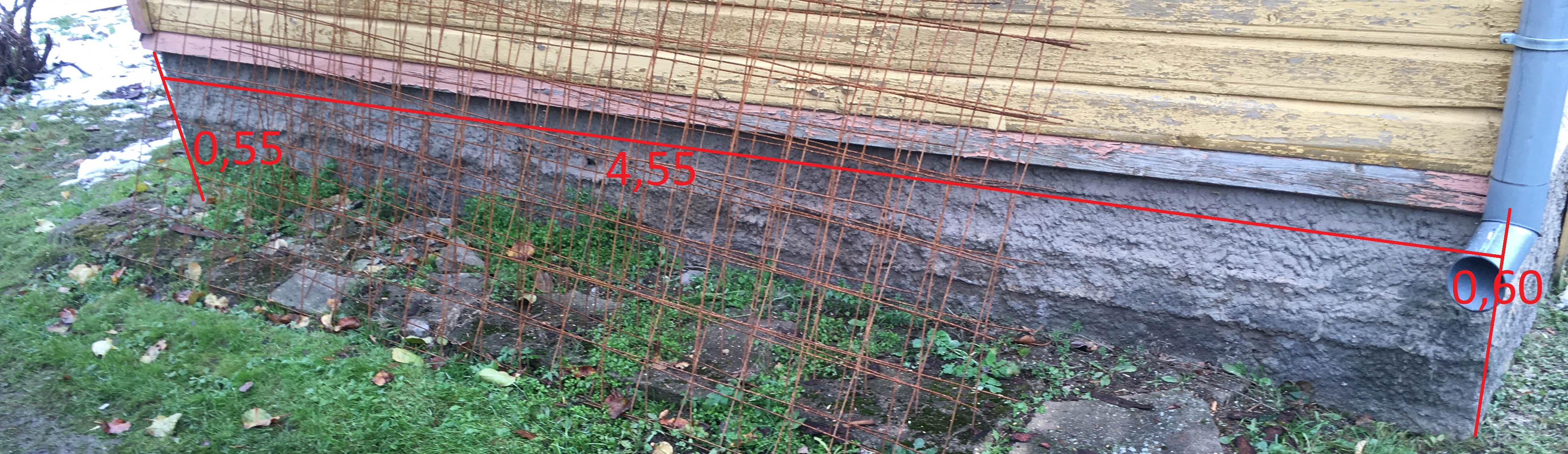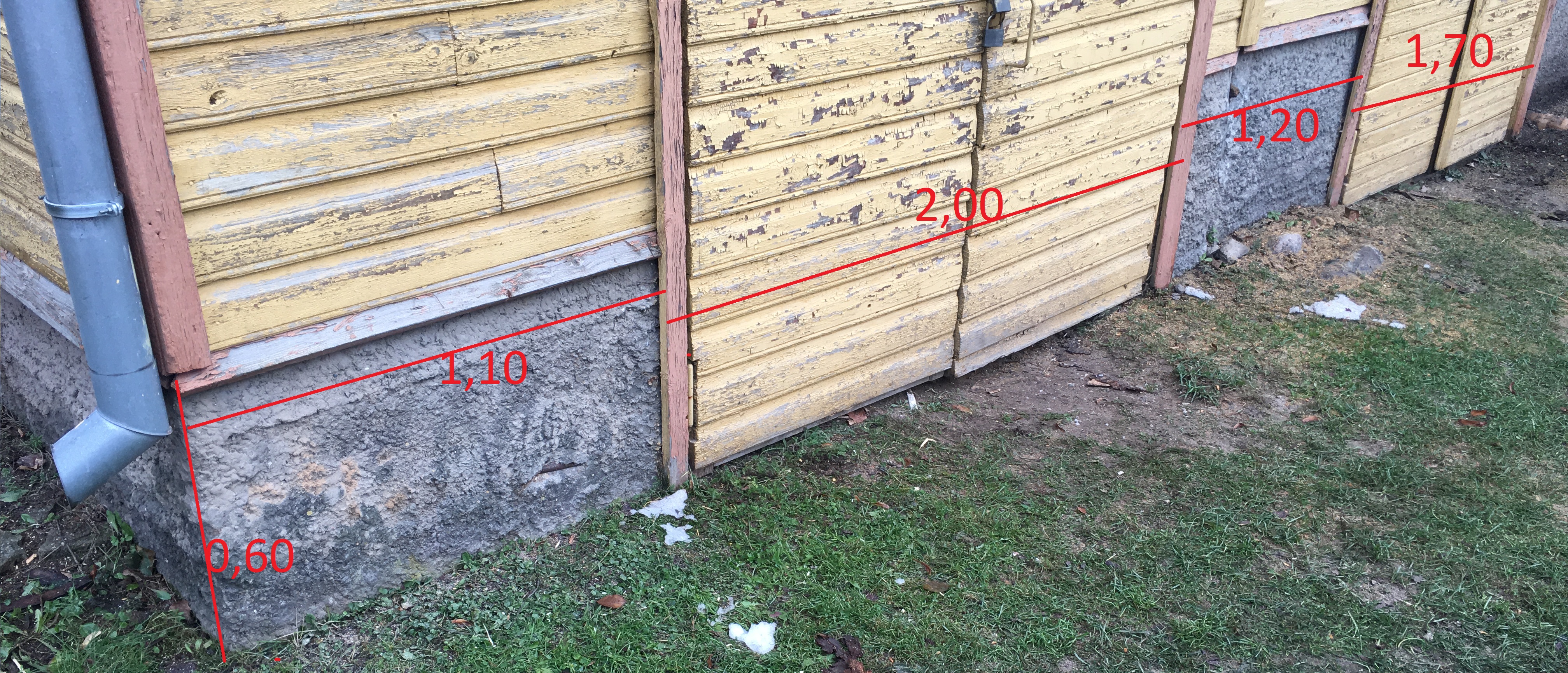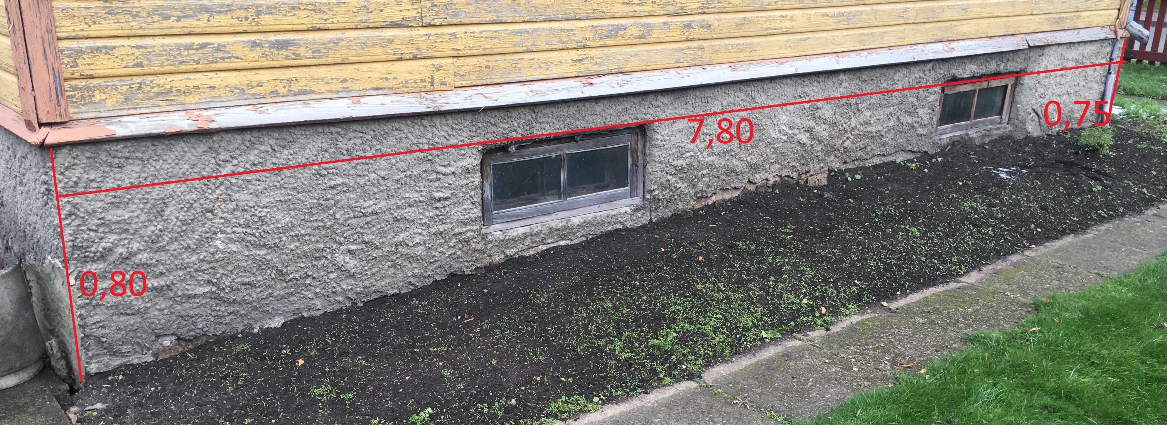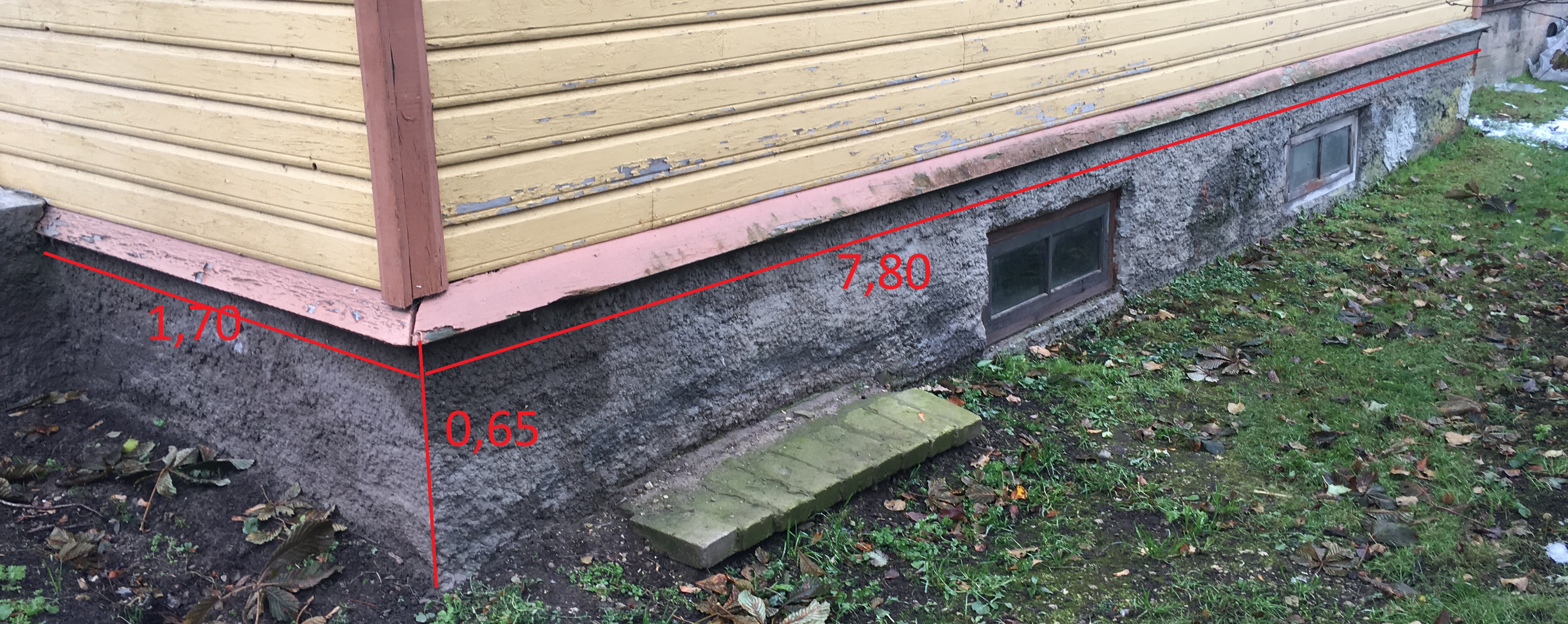 Lisatud pildid vundamendi plaanist ning tänastest mõõtudest (pinnas ümber hoone ebatasane).