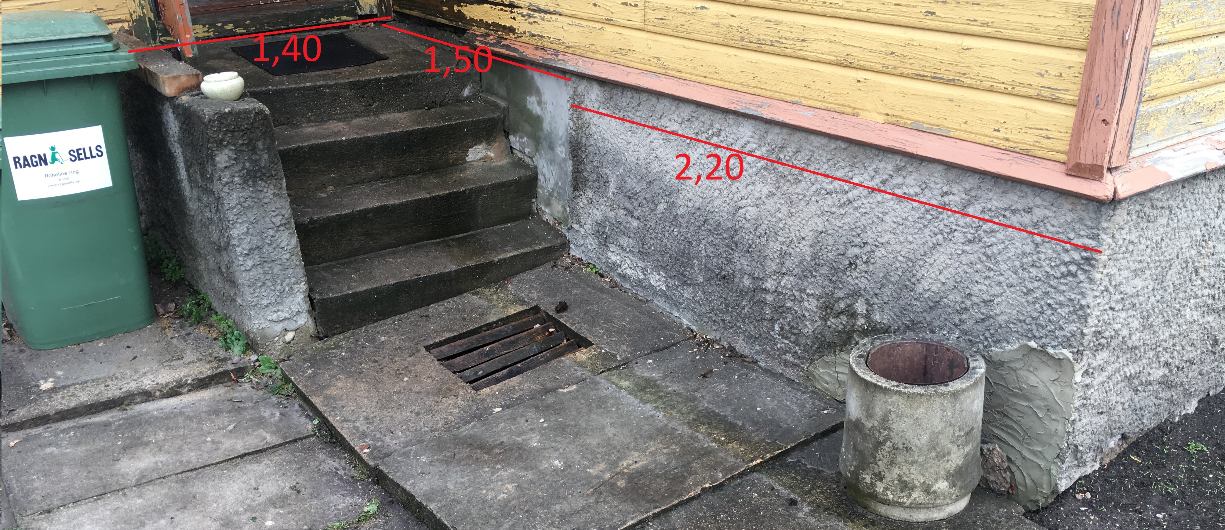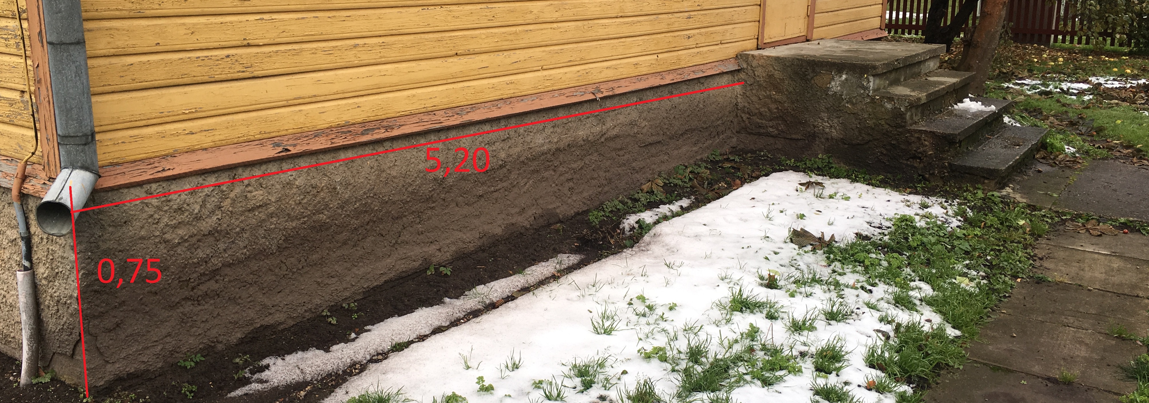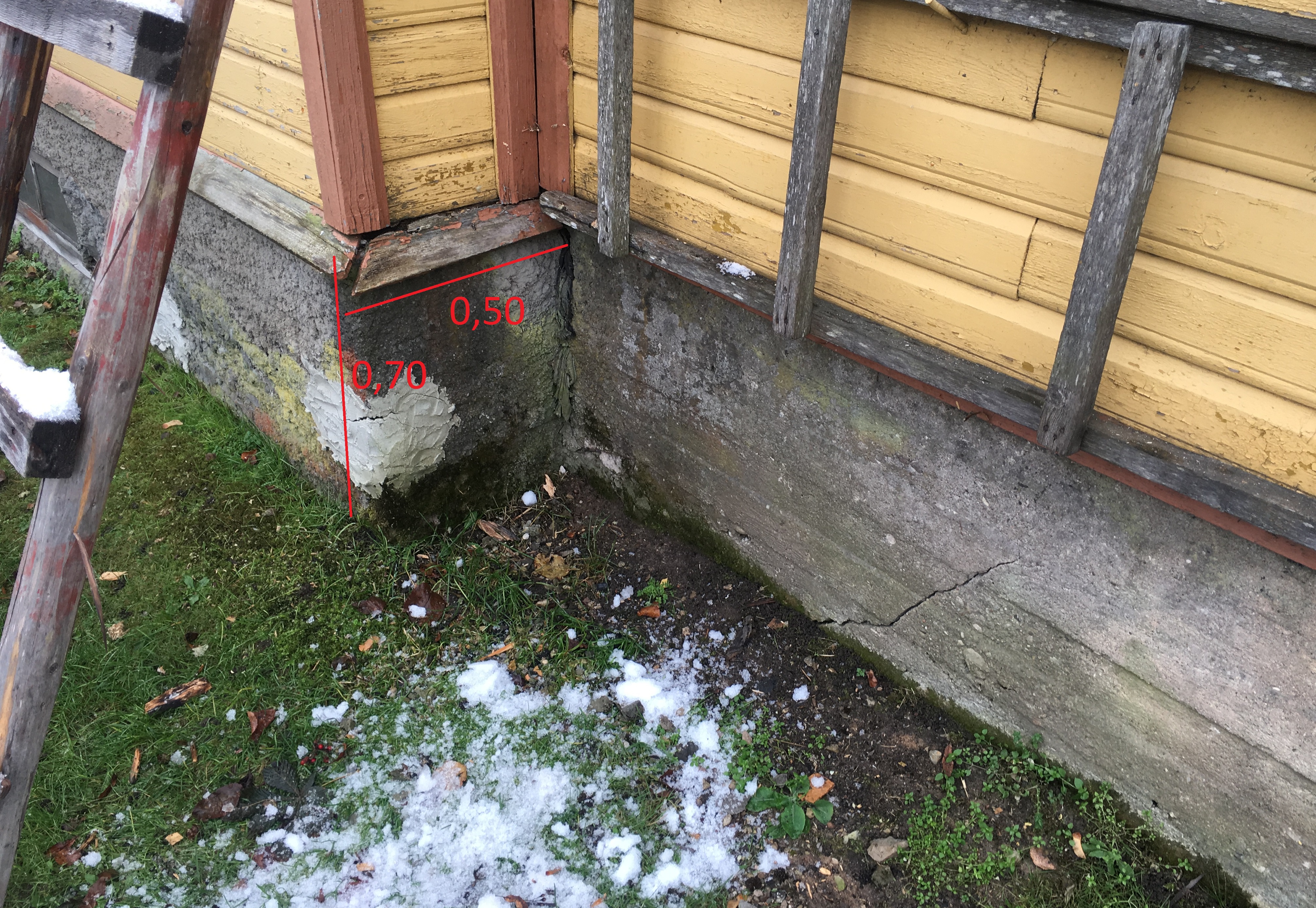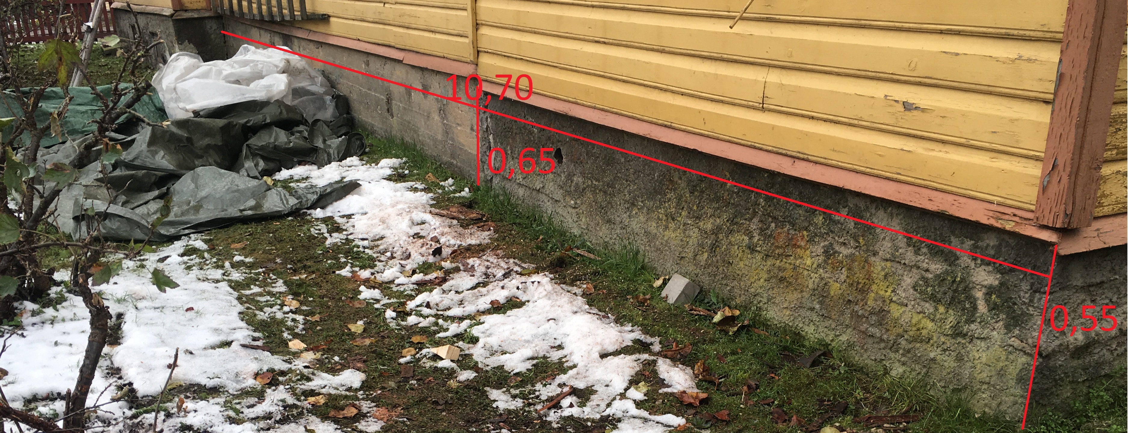 Lisatud pildid vundamendi plaanist ning tänastest mõõtudest (pinnas ümber hoone ebatasane).