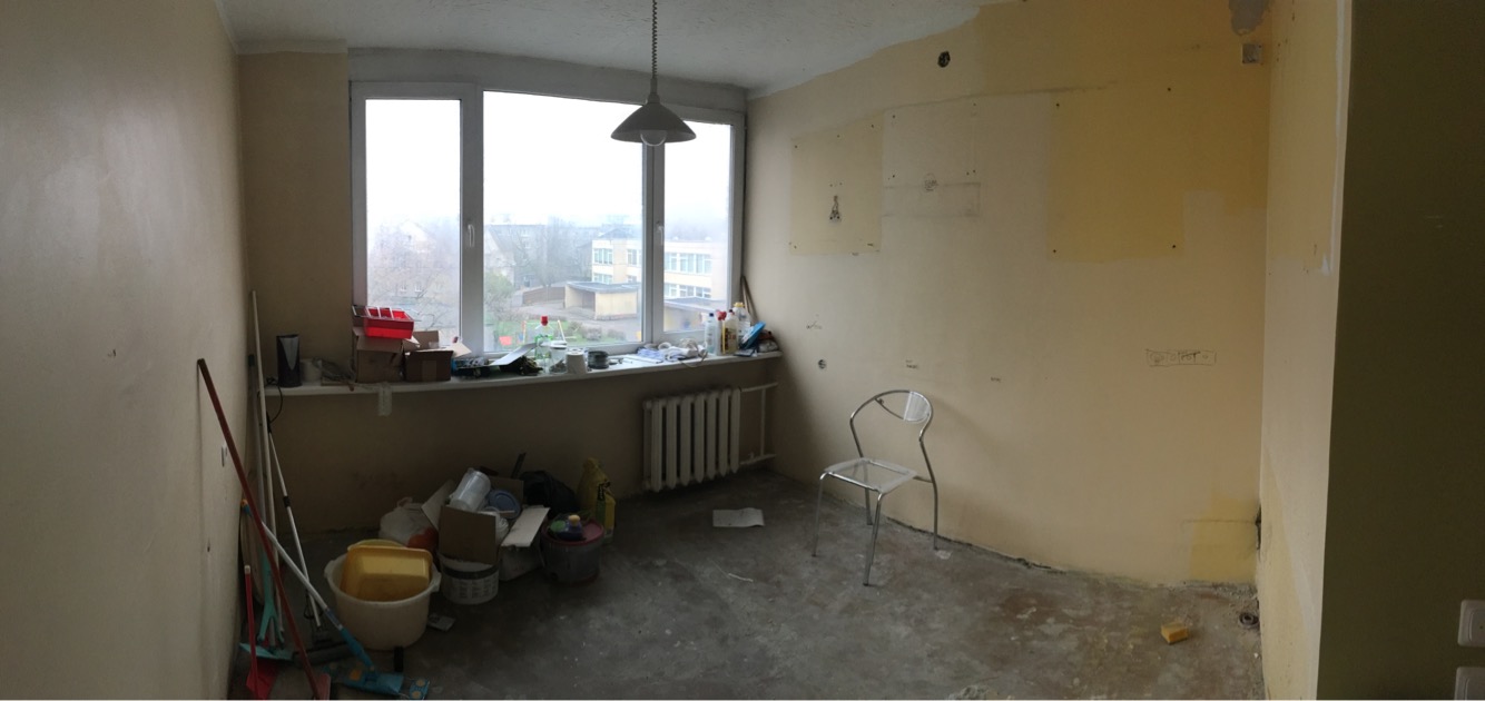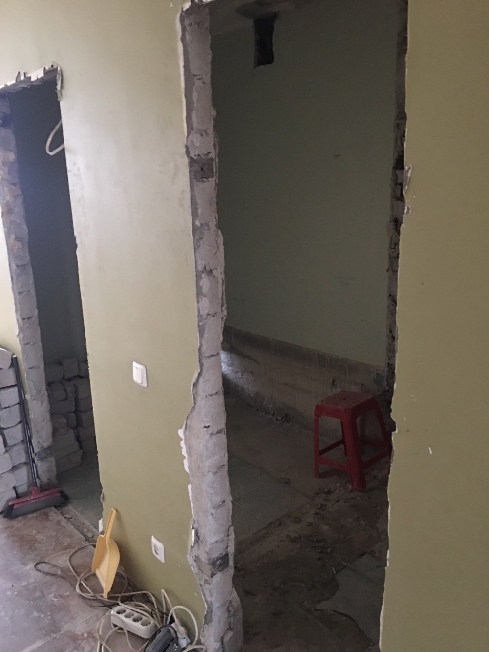 Korteris on eemaldatud uksed (WC, vannituba, panipaik) koos lengidega, lisaks remondi ettevalmistuse käigus eemaldatud WC ja vannitoa vaheline tellissein, vann, kraanikauss ja WC pott.