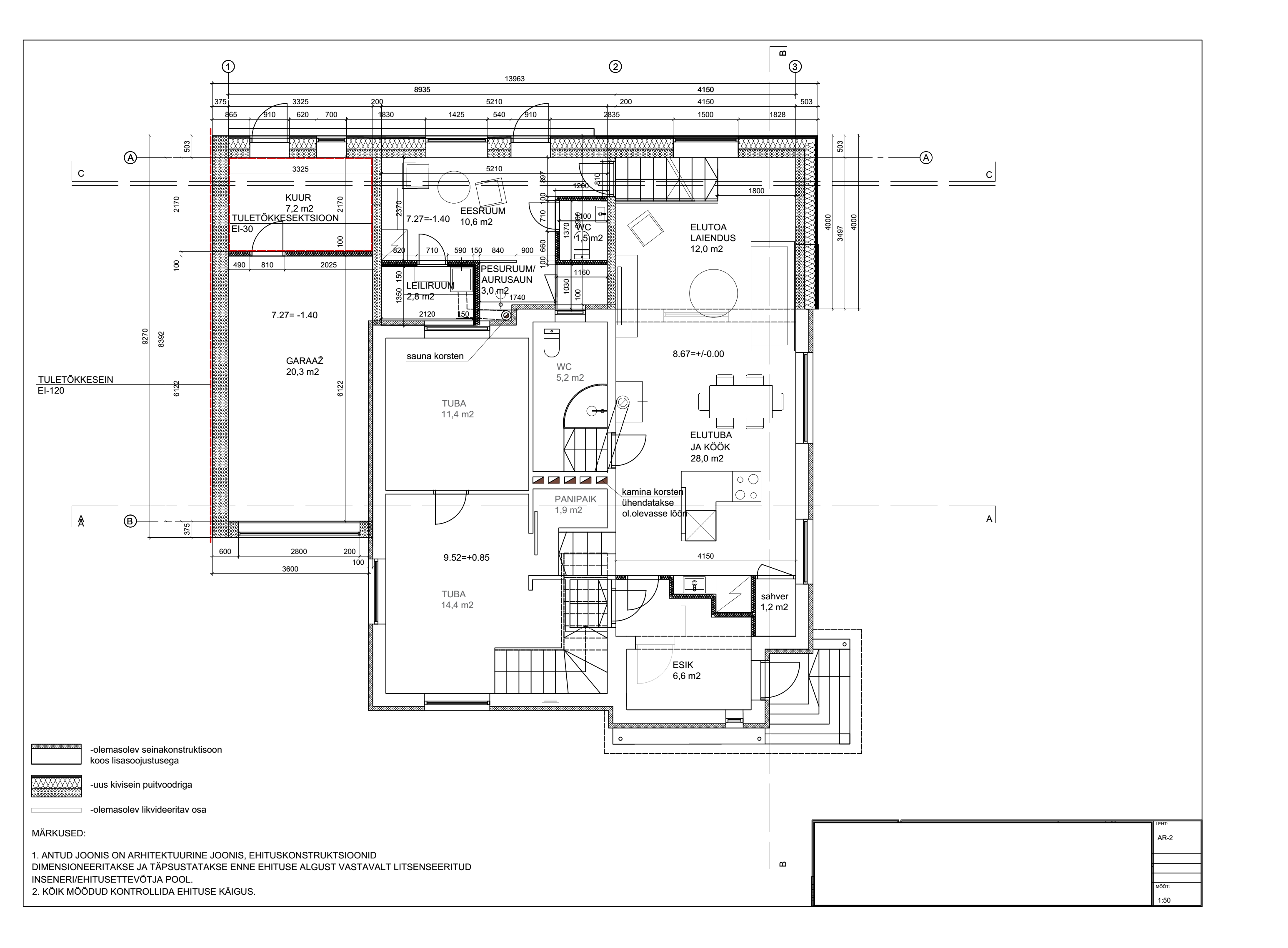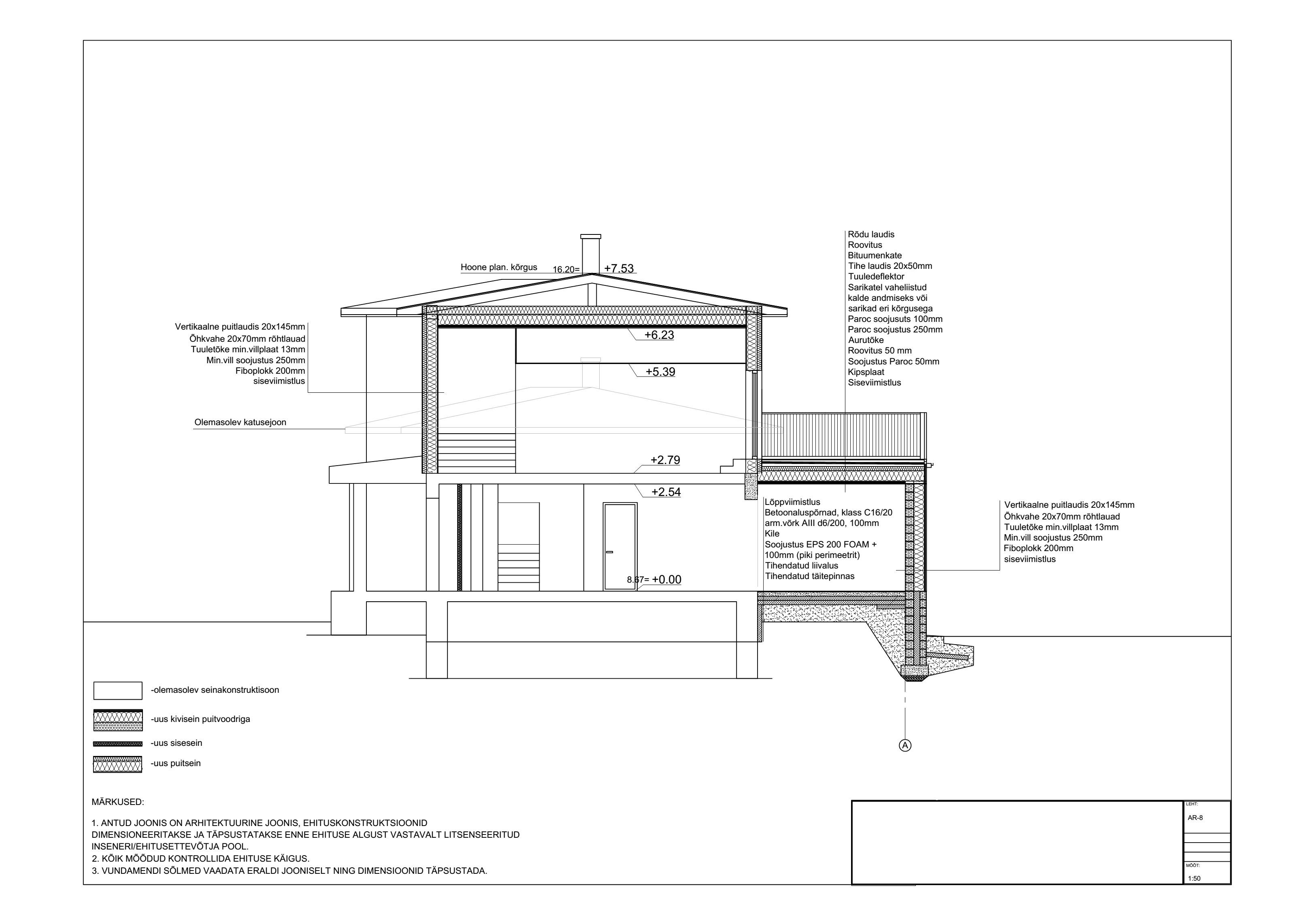 1960-ndatel ehitatud 1,5-kordsele majale teise korruse ja laienduse (garaaž, kuur, saun ja elutoa pikendus) ehitamine.