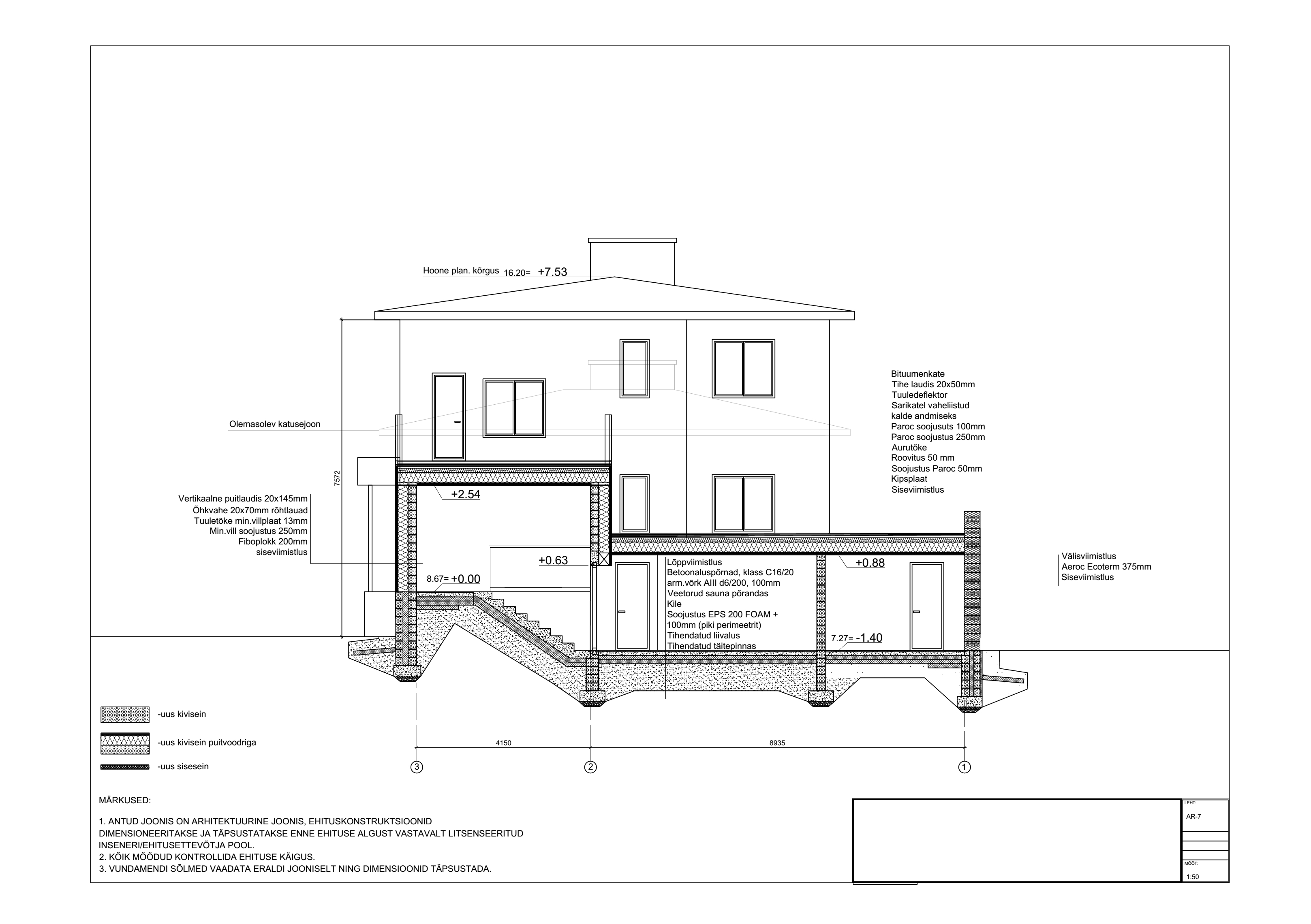Kõik materjalid arvestada hinnapakkumisse - välja arvatud uksed-aknad, põrandalauad ja -plaadid.