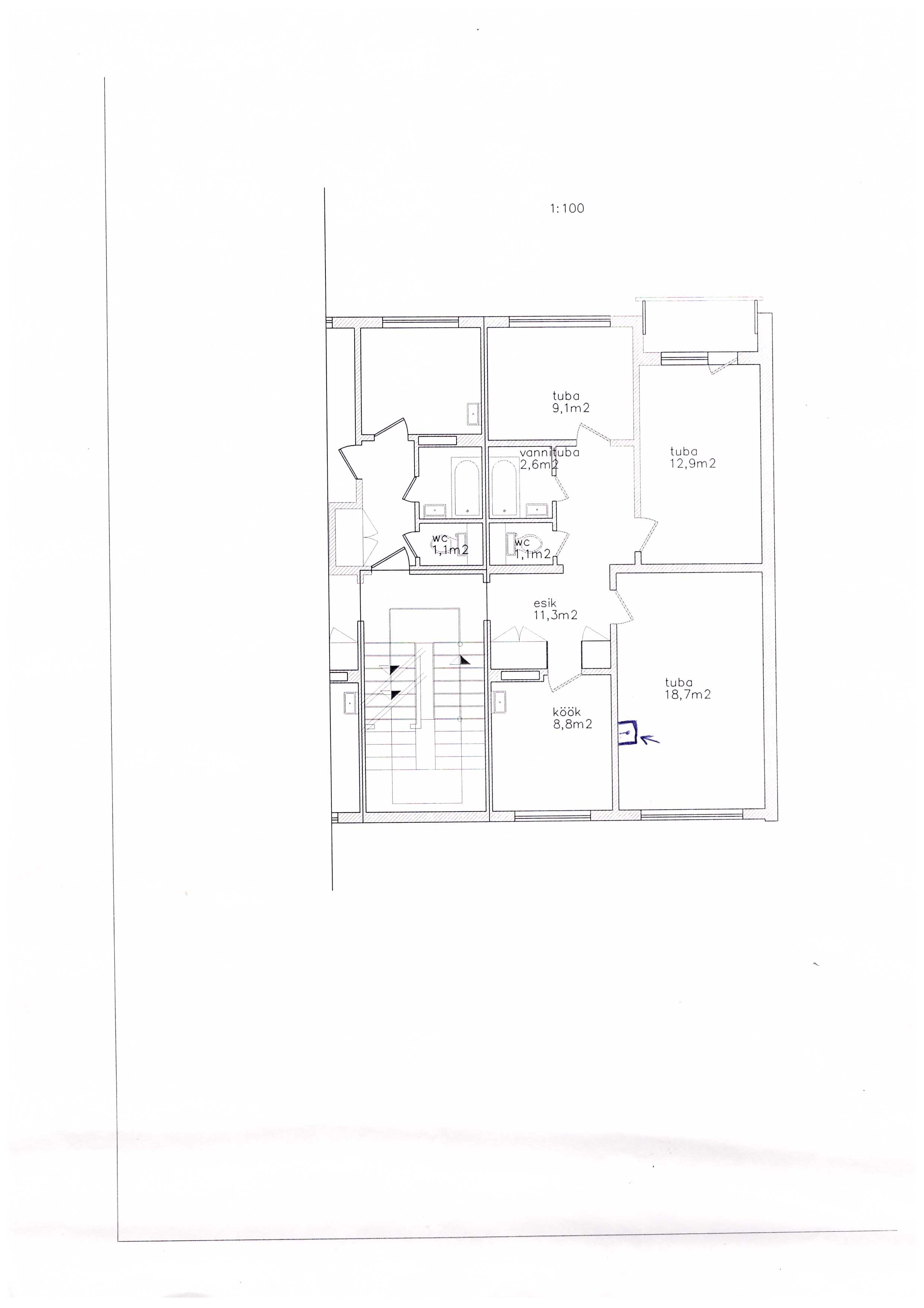 Piltides lisatud korteri plaan, kus noolega märgitud koht, kuhu on planeeritud valamu.