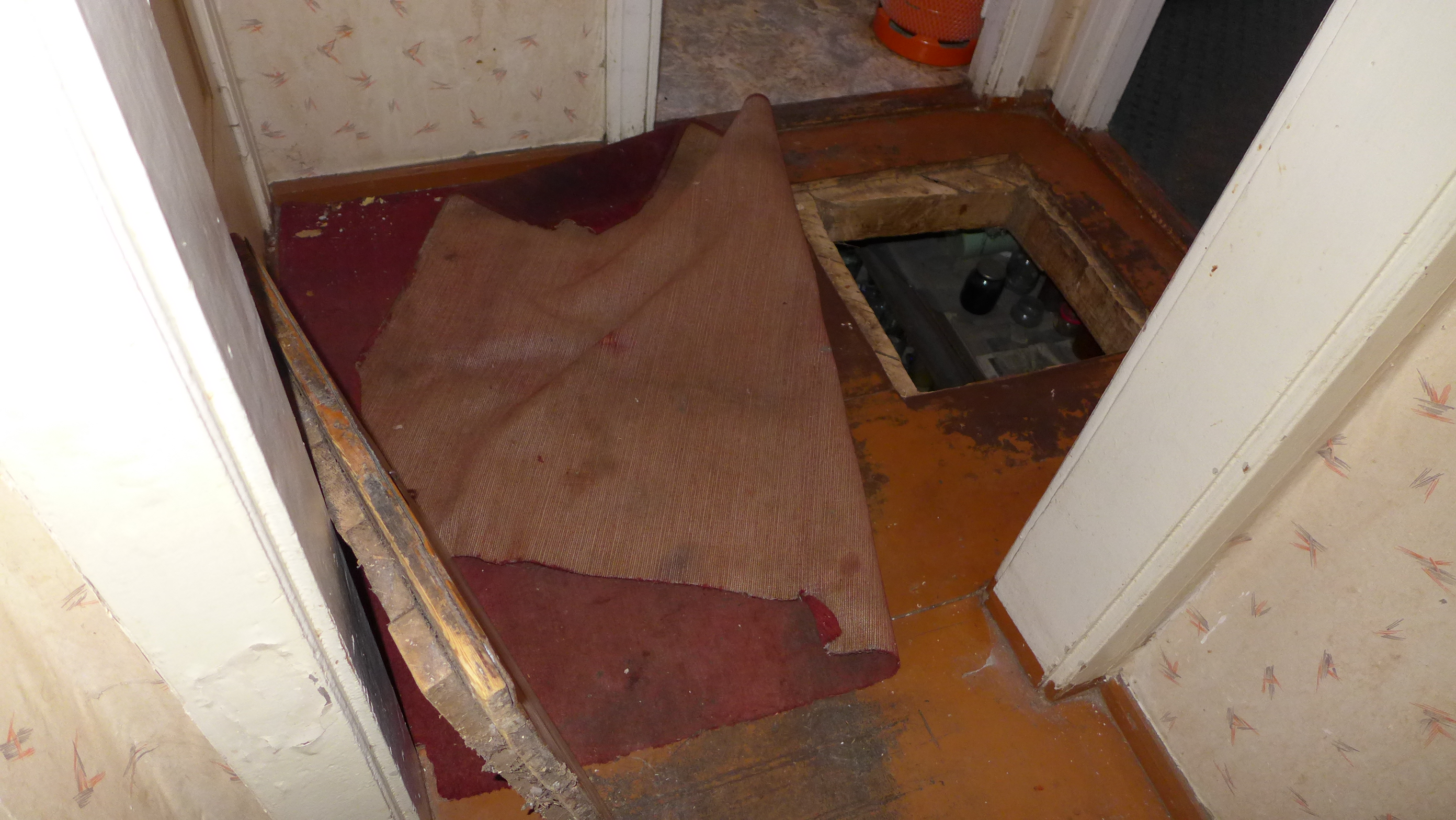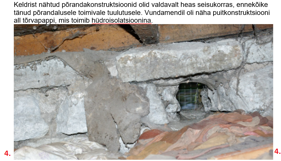 - Korteri all on 2 väikest keldriosa/panipaika. Keldri silikaatseinad puhastada, ära lagunenud osad taastada (vähesel määral, ent siiski). Põrandasse jätta/teha analoogselt praegusele olukorrale, luugid, keldrisse pääsemiseks.