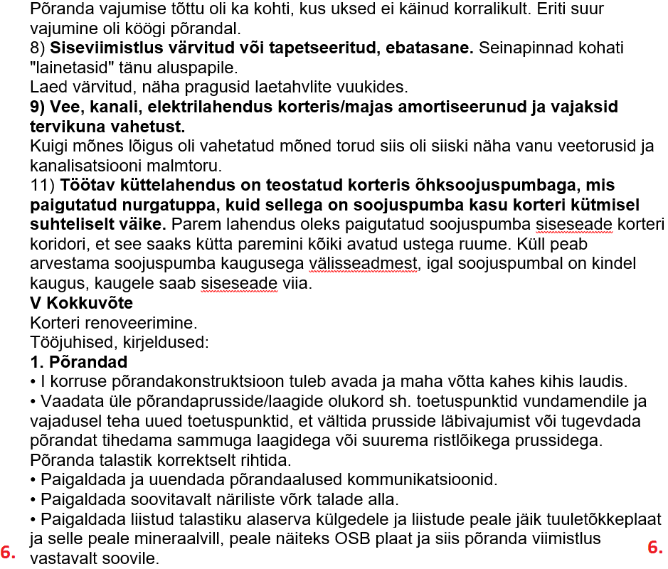 - Vee, kanali, elektrilahendus korteris/majas amortiseerunud ja vajavad tervikuna vahetust.