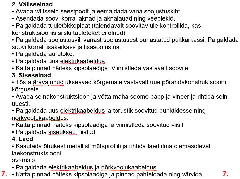 • Paigaldada uus elektrikaabeldus ja torustik soovitud punktidesse ning nõrkvoolukaabeldus.