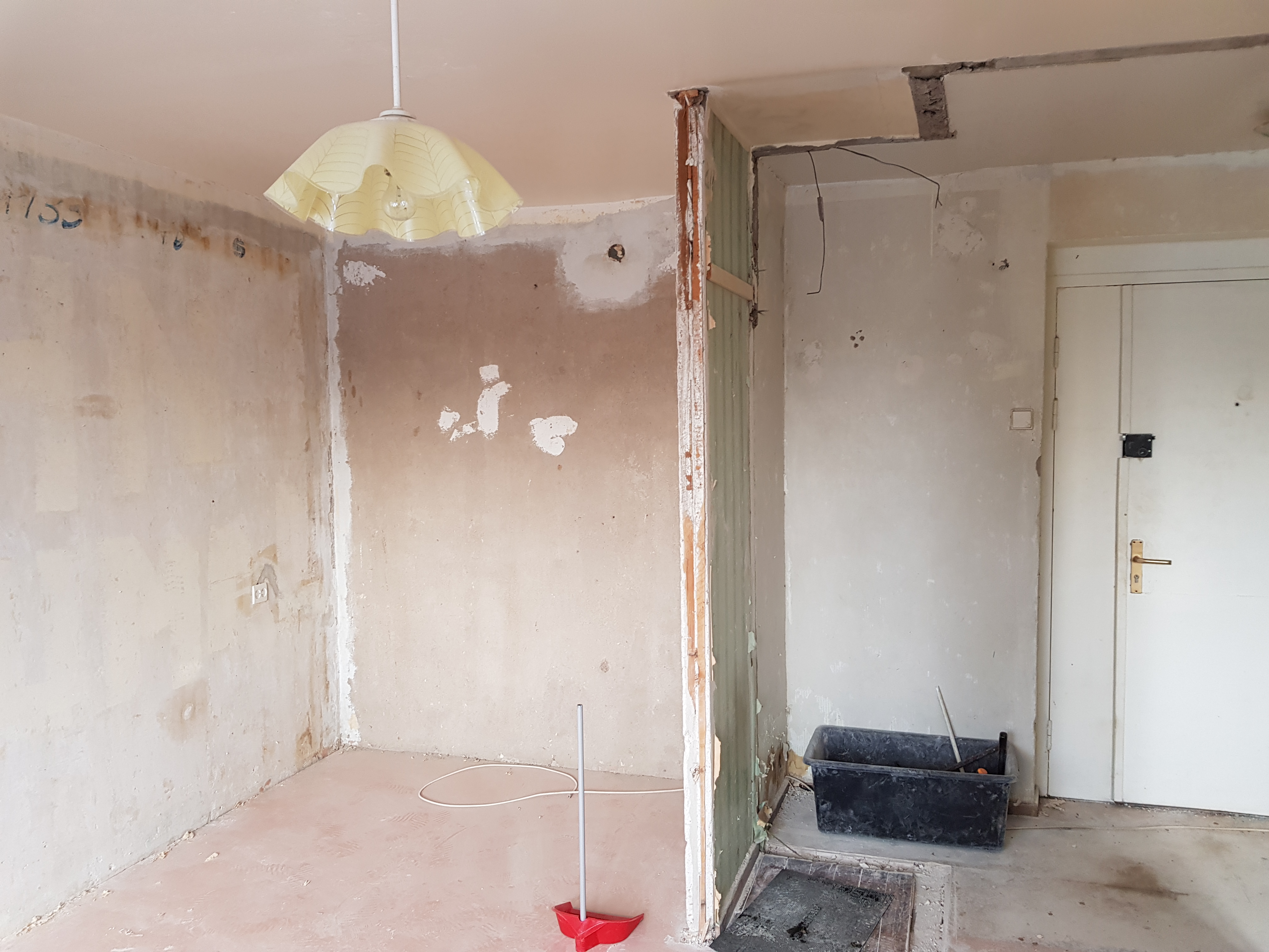 1 toalise 29m2 üldpinnaga Raplas asuva korteri täisrenoveerimine . Korter asub 5-korruselise maja viiendal korrusel. Korter on tühi, eemaldatud on santehnika, siseuksed ja enamik tapeeti. Elutoa ja köögi sein, kus asus siseuks, on samuti eemaldatud (korteri praegune plaan fotode all).