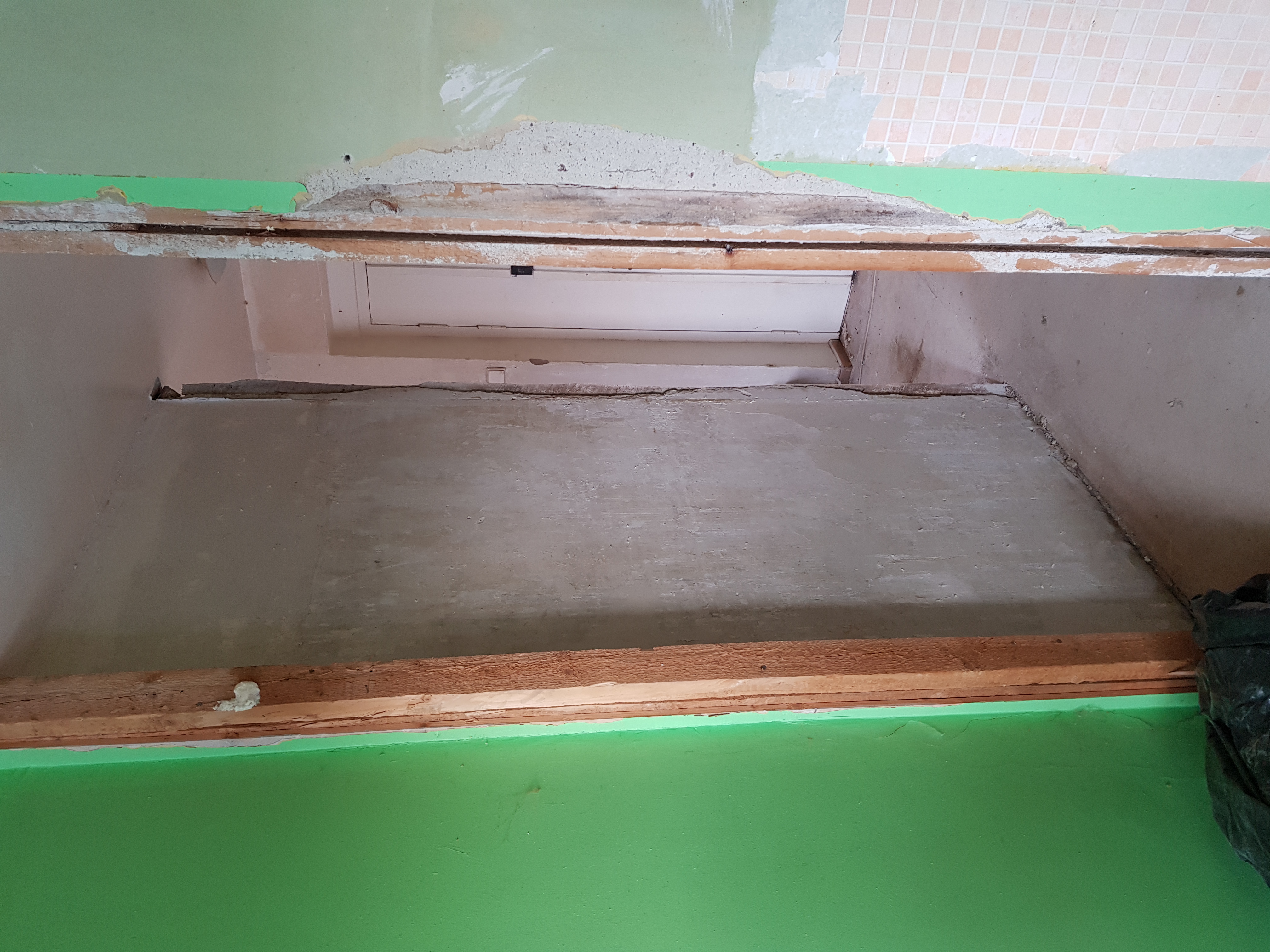5. Klikkparketi paigaldamine kööki, esikusse ja elutuppa, põrandaliistude paigaldamine. Parkett paigaldatakse olemasoleva põranda peale (laudpõrand, mis on elutoas ja esikus kaetud papiga).