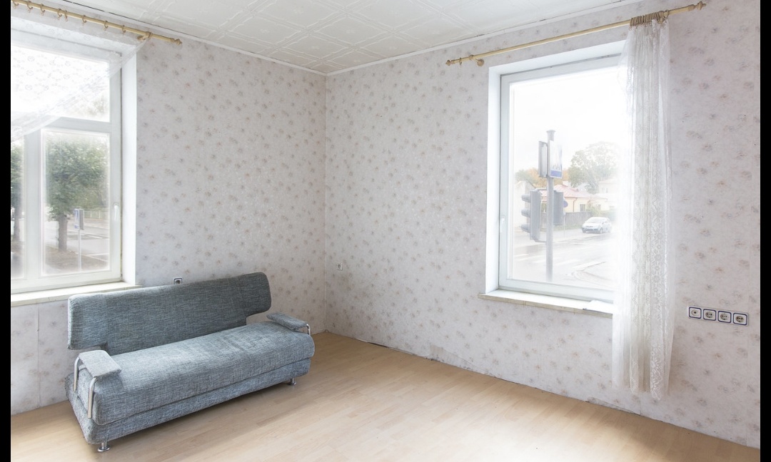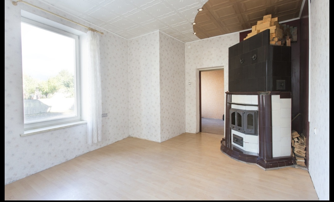 Wc 1.6m²: seinad kips+värv, põrand laud.