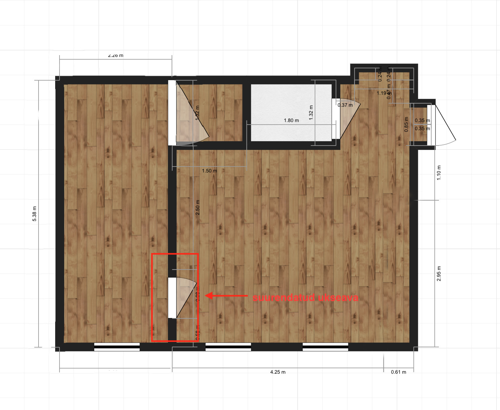 - suurendada ukseava - eemaldada uksepiidad/liistud, võtta maha mittekandvat kipsseina umbes 1 meetri ulatuses. Ja ehitada/viimistleda ukseava. Ust sinna esialgu ei paigaldata.