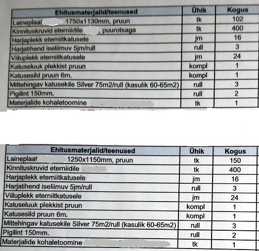 | Ehitusmaterjalid: | Töö tellija poolt |