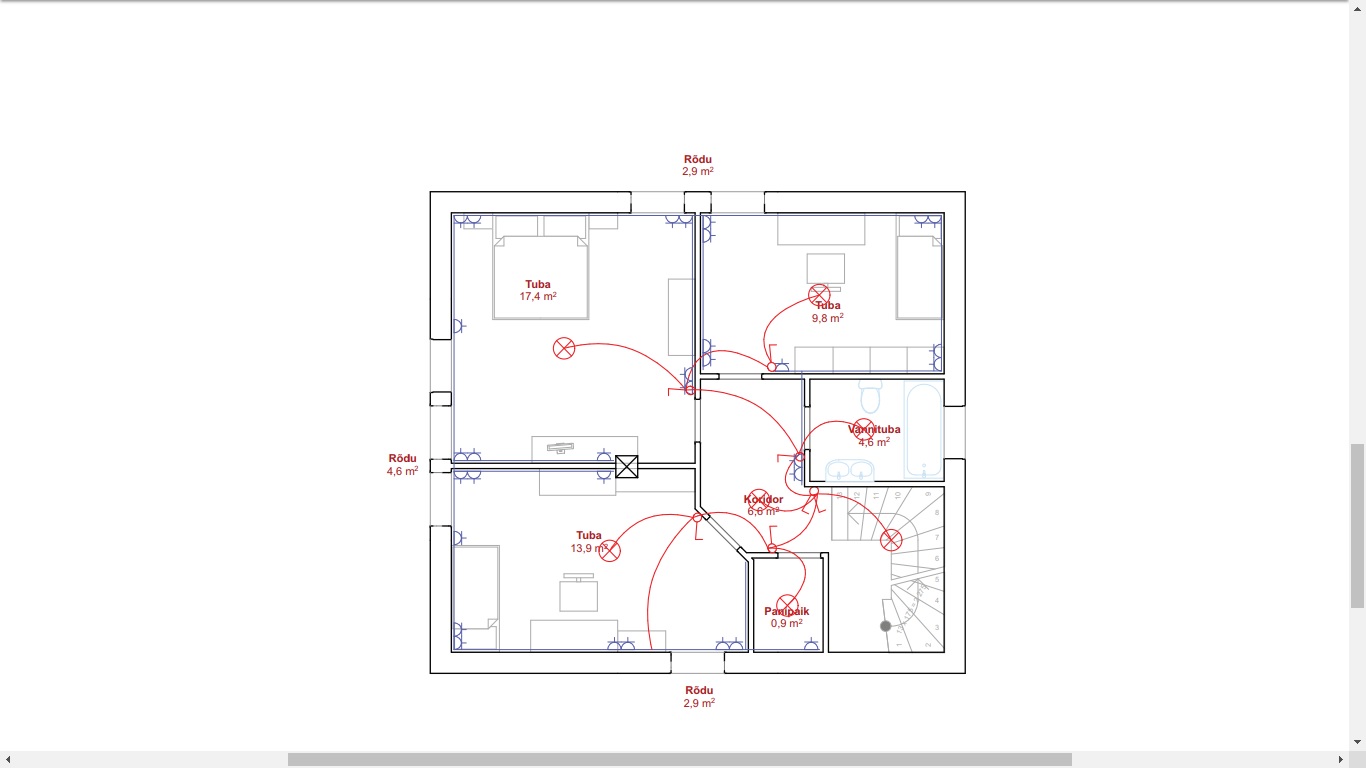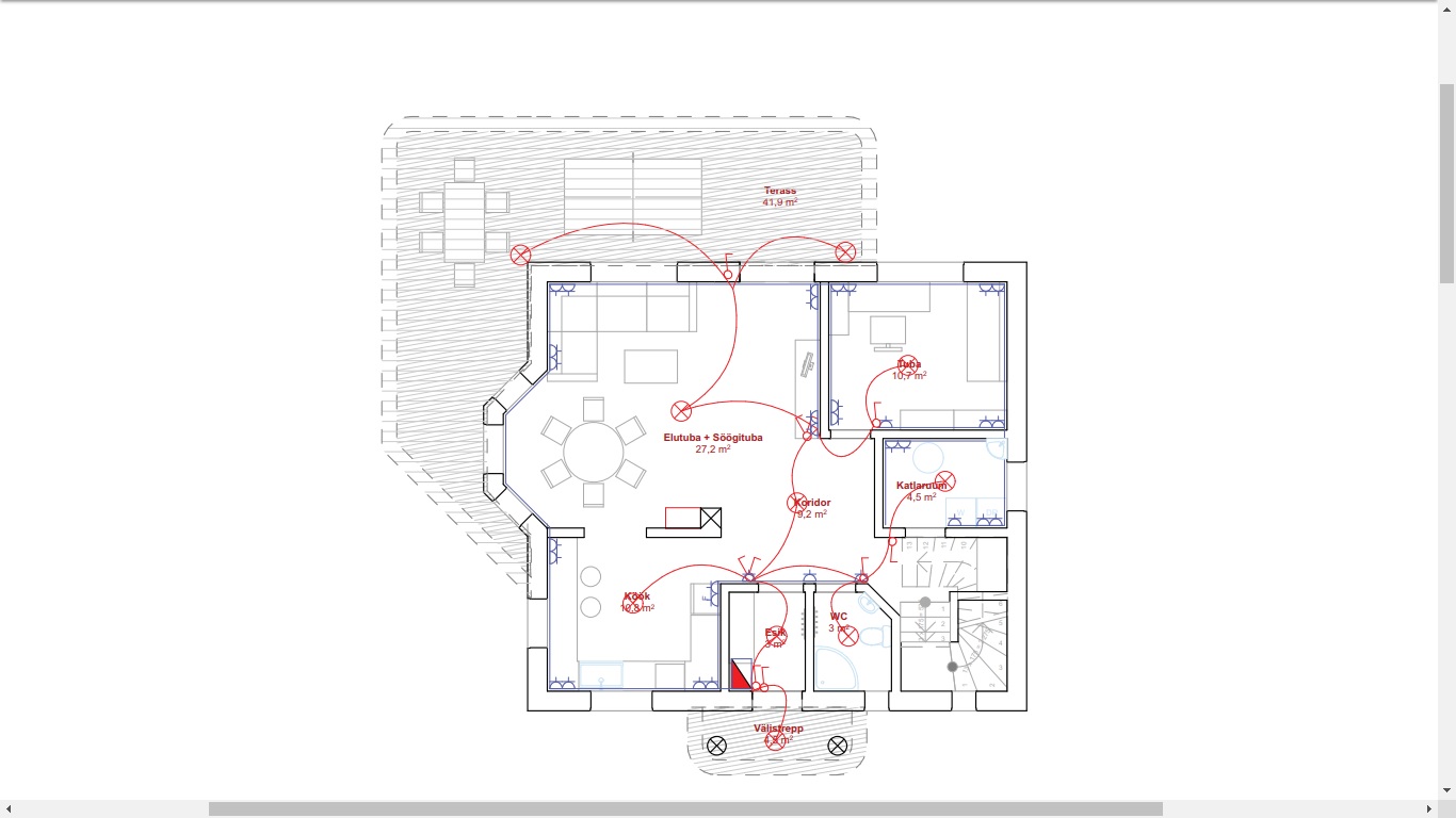 Pakkumine sisaldab kõik vajalikud töid, materjale ja dokumentatsiooni eramu elektripaigaldise väljaehitamiseks ja üleandmiseks. s.h maakaabli ja maanduse paigaldust, nõuetekohase projekti, mõõtmisi ja audiit. Pesad ja lülitid "Sedna" sari valge. Hind ei sisalda valgustite maksumust. Lugupidamisega