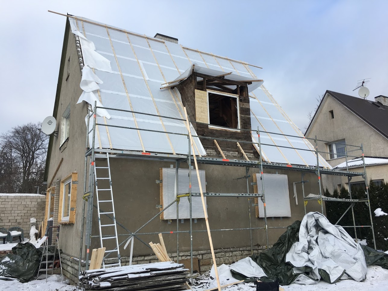 maja telliskiviseinad (pealt krohvitud) on vaja soojustamiseks katta EPS silver 20cm paksuse penoplastiga ja seejärel armeerida ja krohvida helekollase nanokrohviga. Maja katuseharja kõrgus on 8 m. Seinte pindala ümber maja on 140m2. Maja teisel korrusel olevad aknad on vaja tõsta seinte seest soojustuse sisse sarnaselt 1 korruse akendega. Katuse all olevad 2 väikest akent samuti tõsta väljapoole.