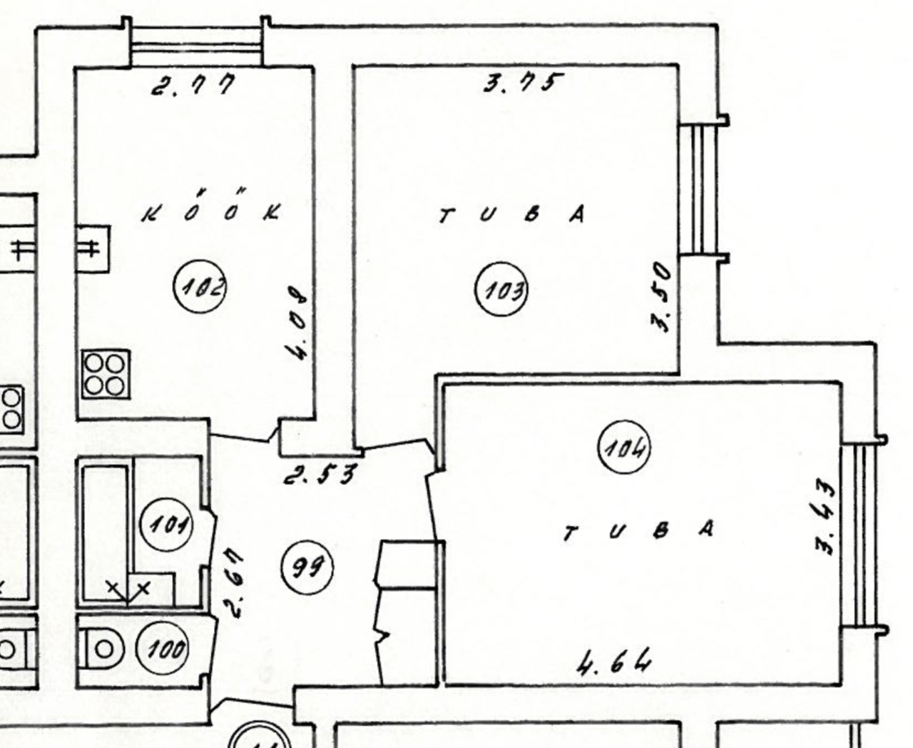 Kahetoalise korteri üldpind on 51, 7 m2 (skeem lisas). Vaja oleks vahetada elektrijuhtmestik alates korrusekilbist, wc ja vannituba võimalusel kokku ehitada ja teostada täielik siseviimistlus ning santehnika paigaldus, korteri kõigi lagede uus viimistlus, kõigi seinte remont ja viimistlus, siseuste vahetus, sisseehitatud esikukapi remont (seinte viimistlus ja uued uksed), põrandate vahetus esikus ja köögis, tubades olemasoleva nõukogudeaegse parketi lihvimine ja lakkimine, radiaatorite värvimine.