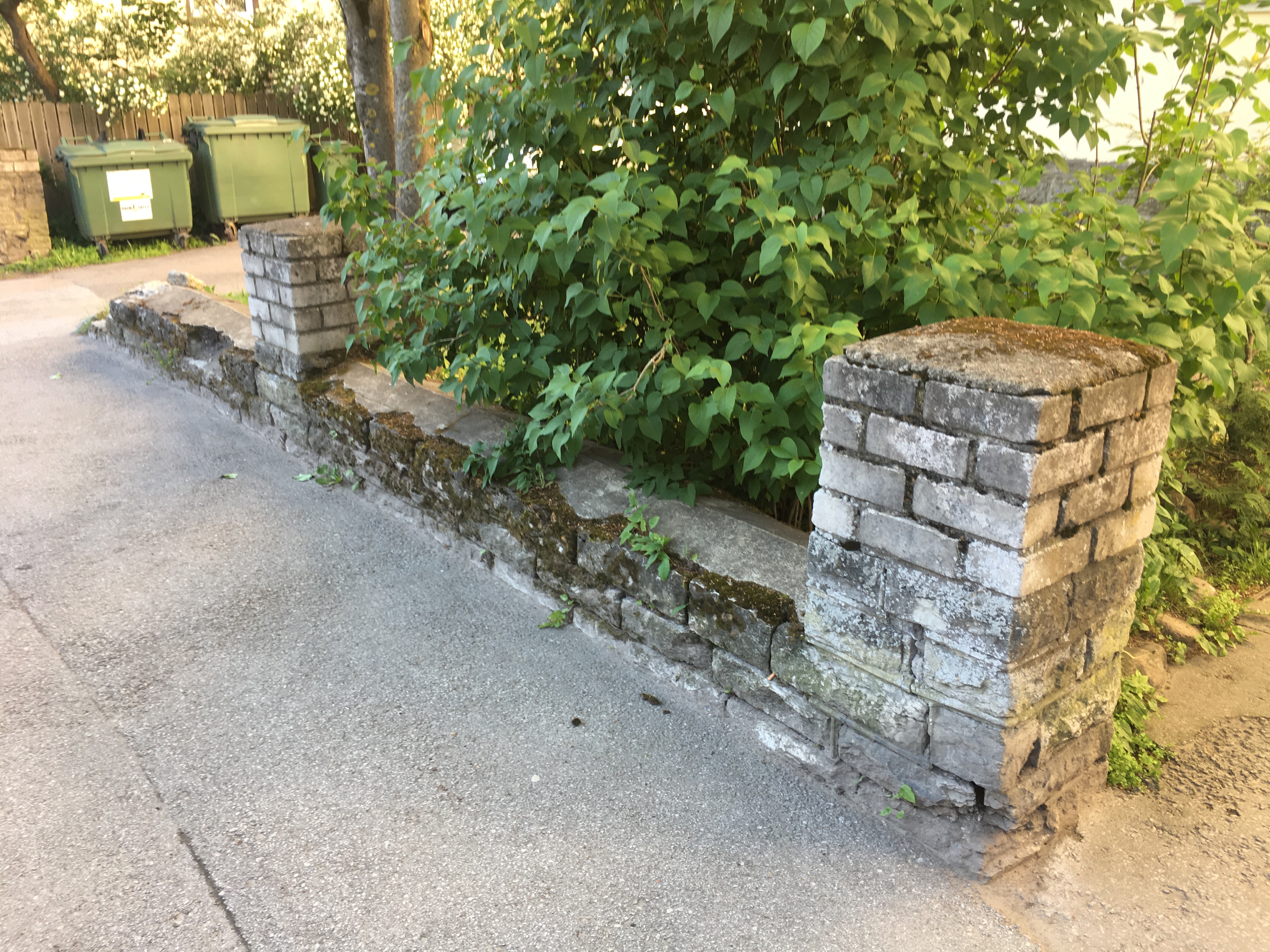 Kiviaia pikkus on 35 meetrit. Alusmüür ca 3-4kivi postid ca 4 kivi kõrgemad. Poste 13. Vajalik ka kivipostide ja alusmüüri katmine seguga. Vuugid korda. Postide vahelised puuduvad raudtorud paigaldada.