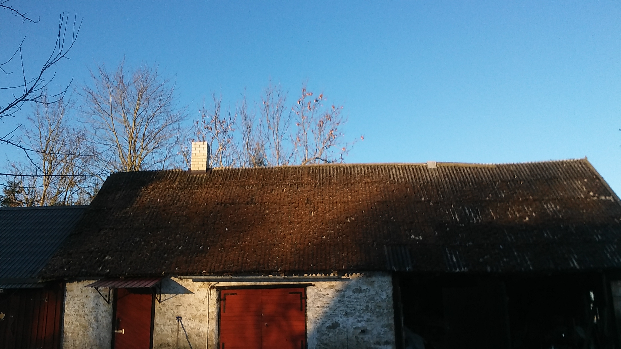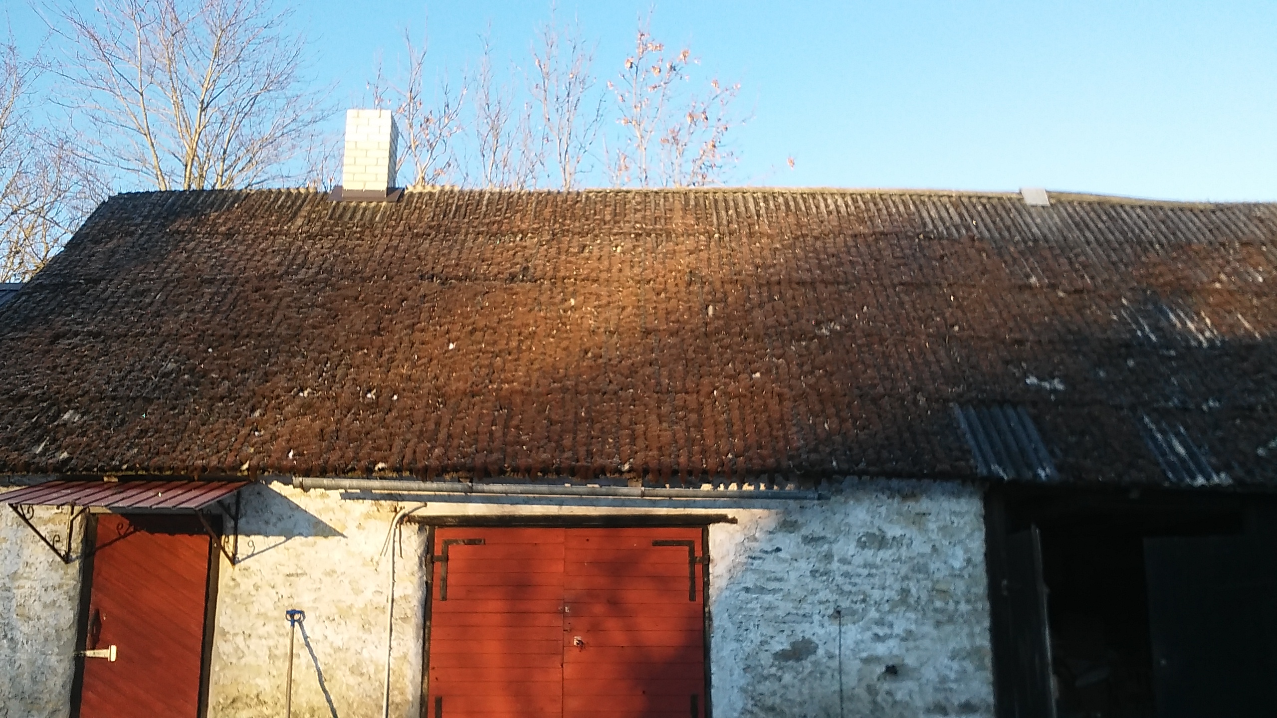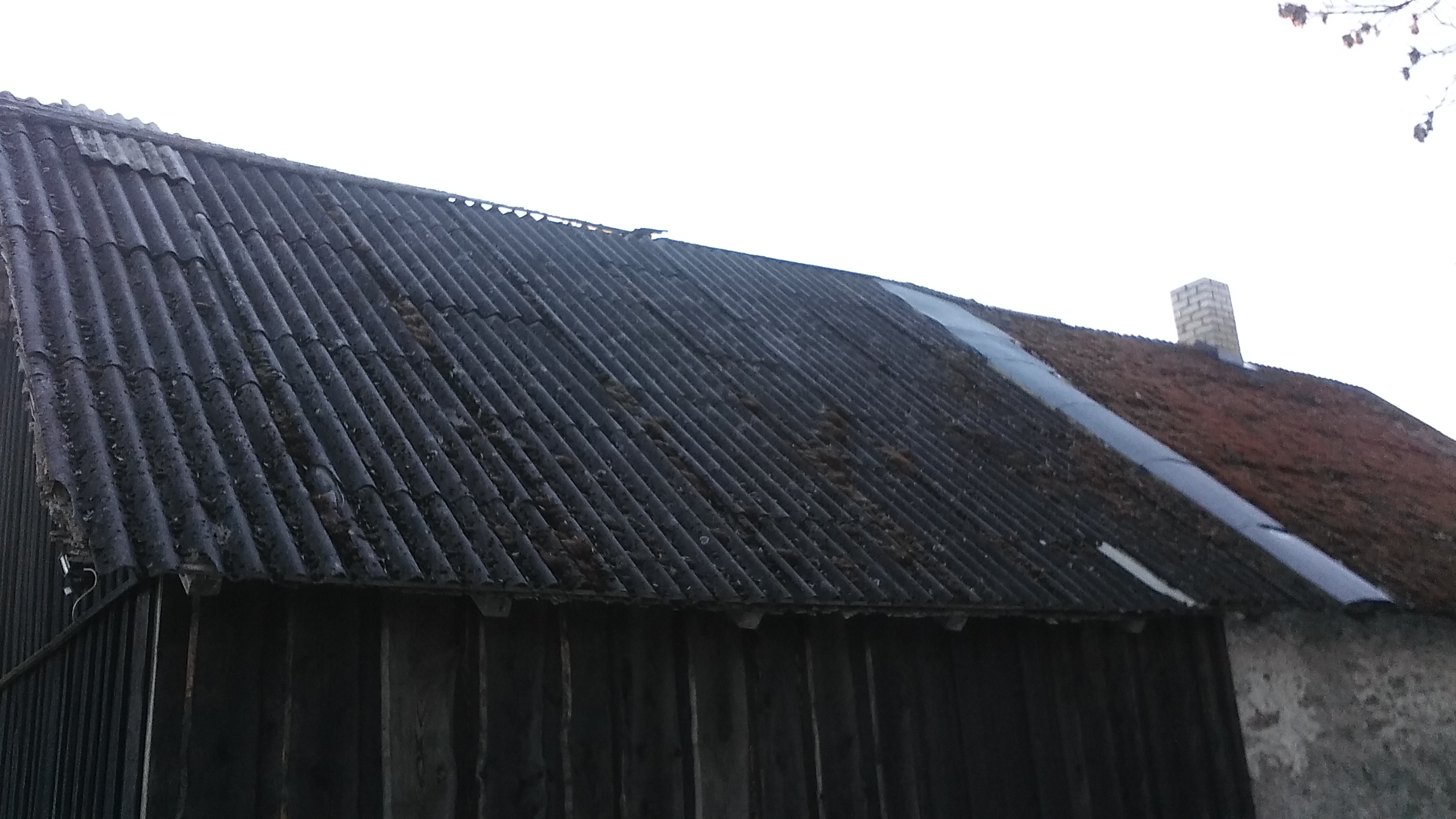 Viilkatus ca 214m2. Materjaliks tuleb plekk, trapets, värvus pruun. Üks korsten, vana katuse eemaldamine. Vana katus eterniit, mille all laast. Vanade materjalide utiliseerimine ei ole vajalik.