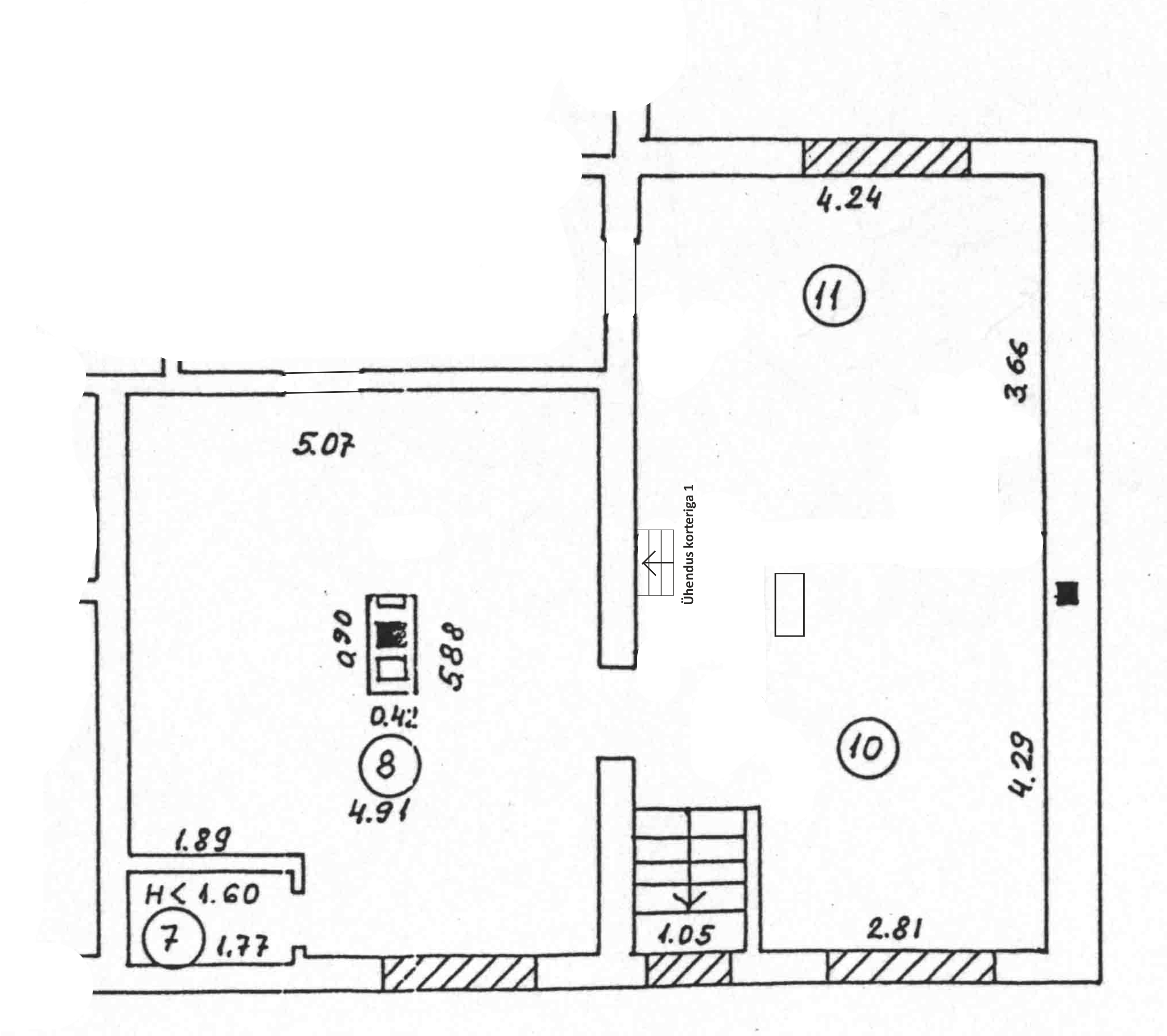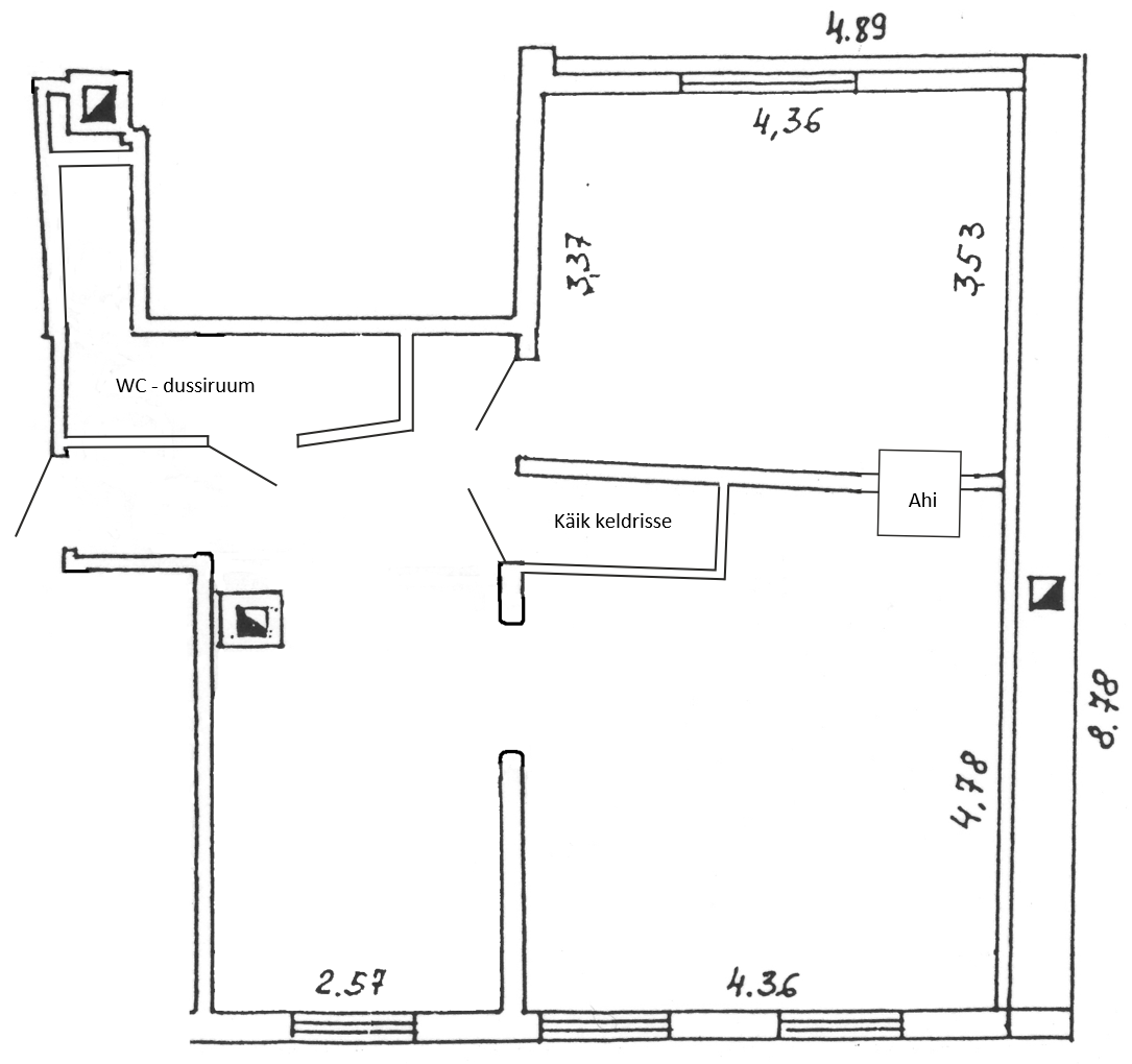 Muudetud on osade kergseinte asetust, tehtud endise pliidi soojamüüri asemele läbikäik tubade vahele, ning läbi põranda läbikäik keldrisse, mis ei kuulu hetkel korteri reaalosa hulka, aga soov on edaspidi liita, ning sellega seoses ka see ära mõõta.