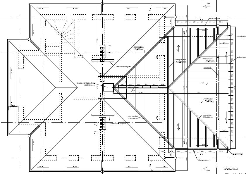 Kahekorruselise eramu juurdeehituse katuse ehitamine. Katuse pindala 62 ruutmeetrit, kalle 20 kraadi.