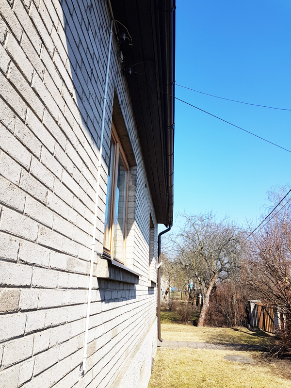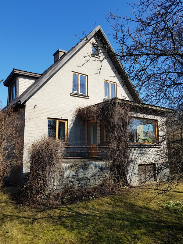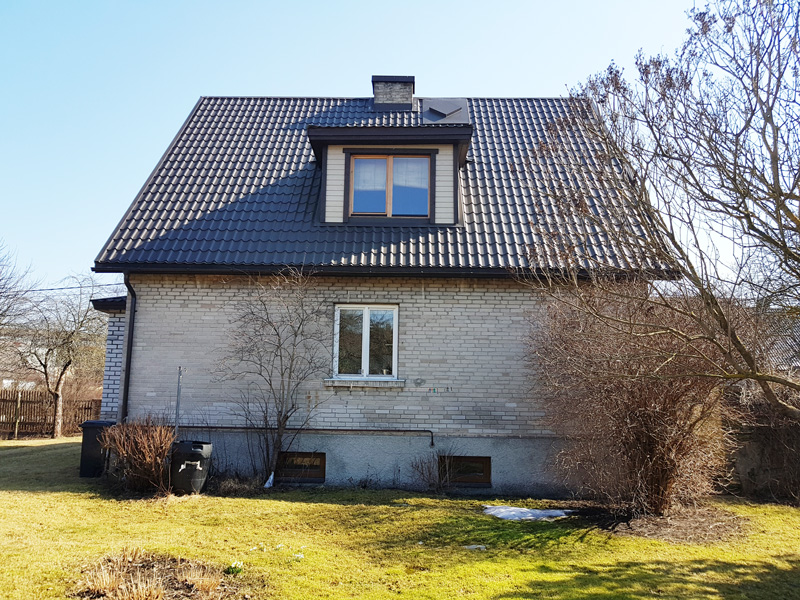 Maja on puitsõrestikul, voodriks on kahekordne tellis, mille vahel on õhuvahe.