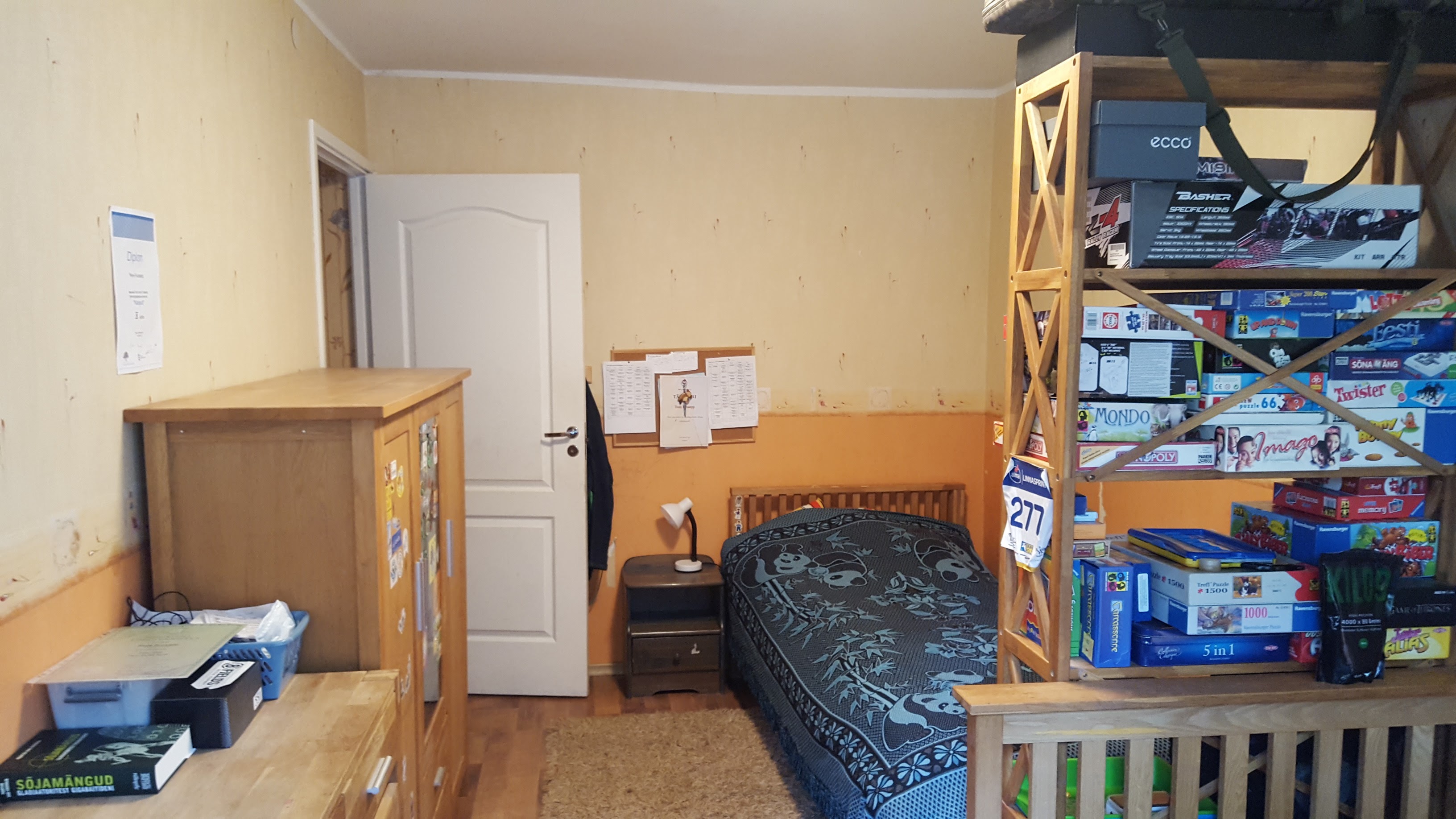 Tapetseerida on vaja kaks tuba ja koridor. Kokku on ca 36jm tapeeti. Värvida on vaja 22m2 (ühe toa lagi 13m2, koridori lagi 7m2 ja köögi osaline lagi 2m2). Vana tapeet on vaja ka eemaldada ning põrandaliistud tagasi paigaldada.