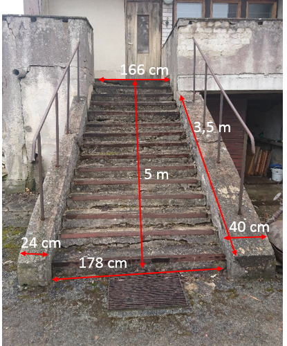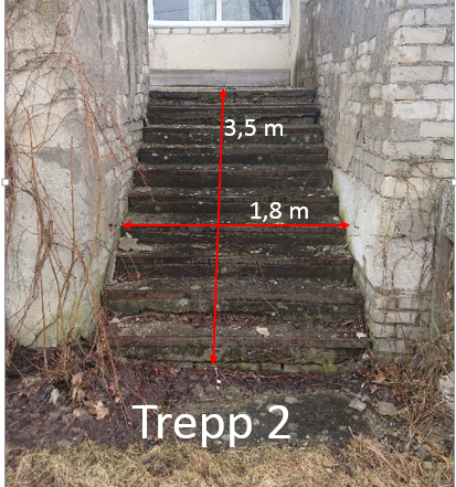 Kahe trepi lammutus ja uute ehitus. 5-meetrine trepp võib ka alt tühjaks jääda. Kindlasti on vaja soojustada maja välissein, mis asub trepi all.