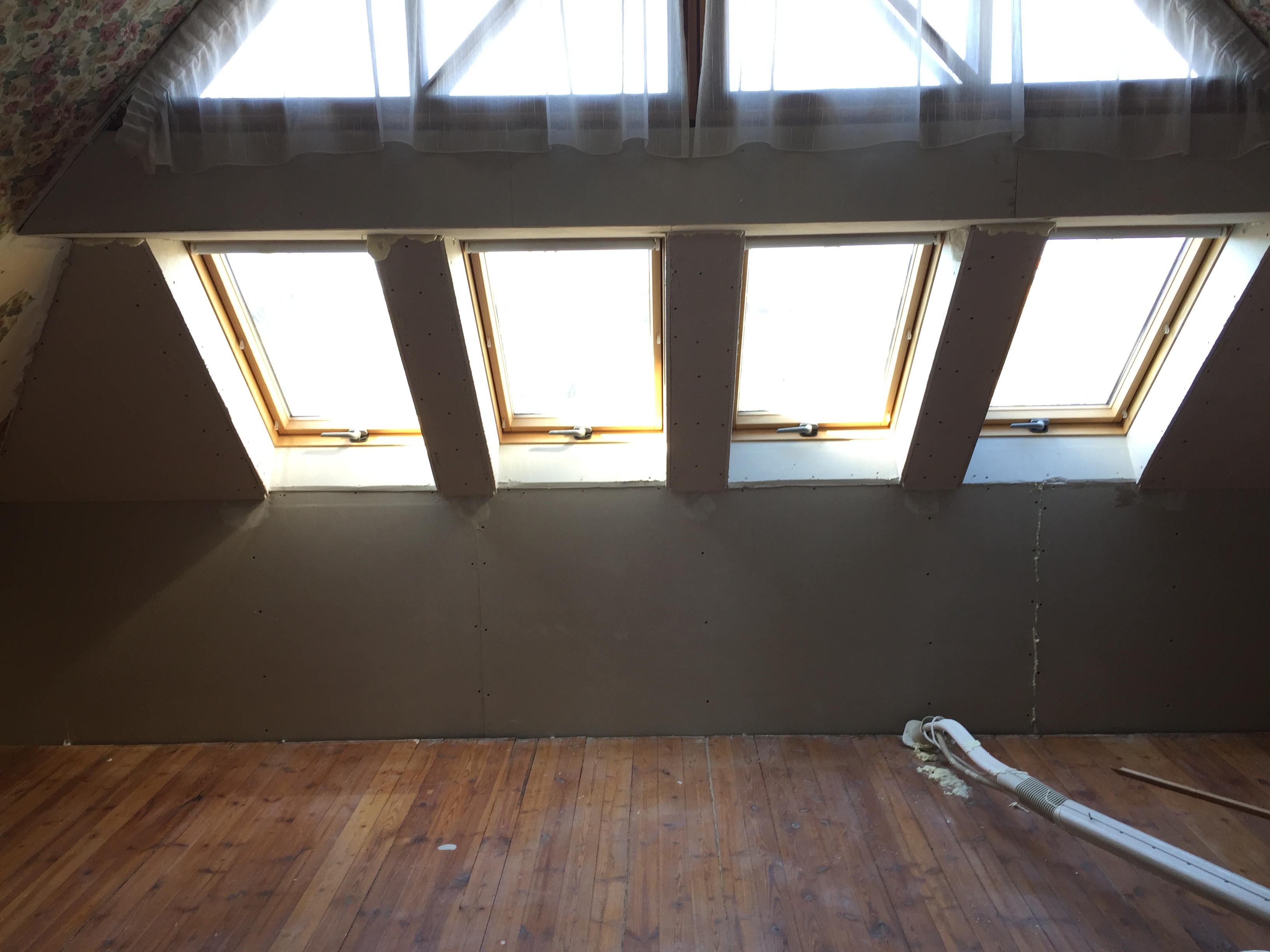 Ridaelamu maja neljanda korruse siseviimistlus kahe toa seintele, mis kokku umbes 100 m2. (Põranda pind 50m2)