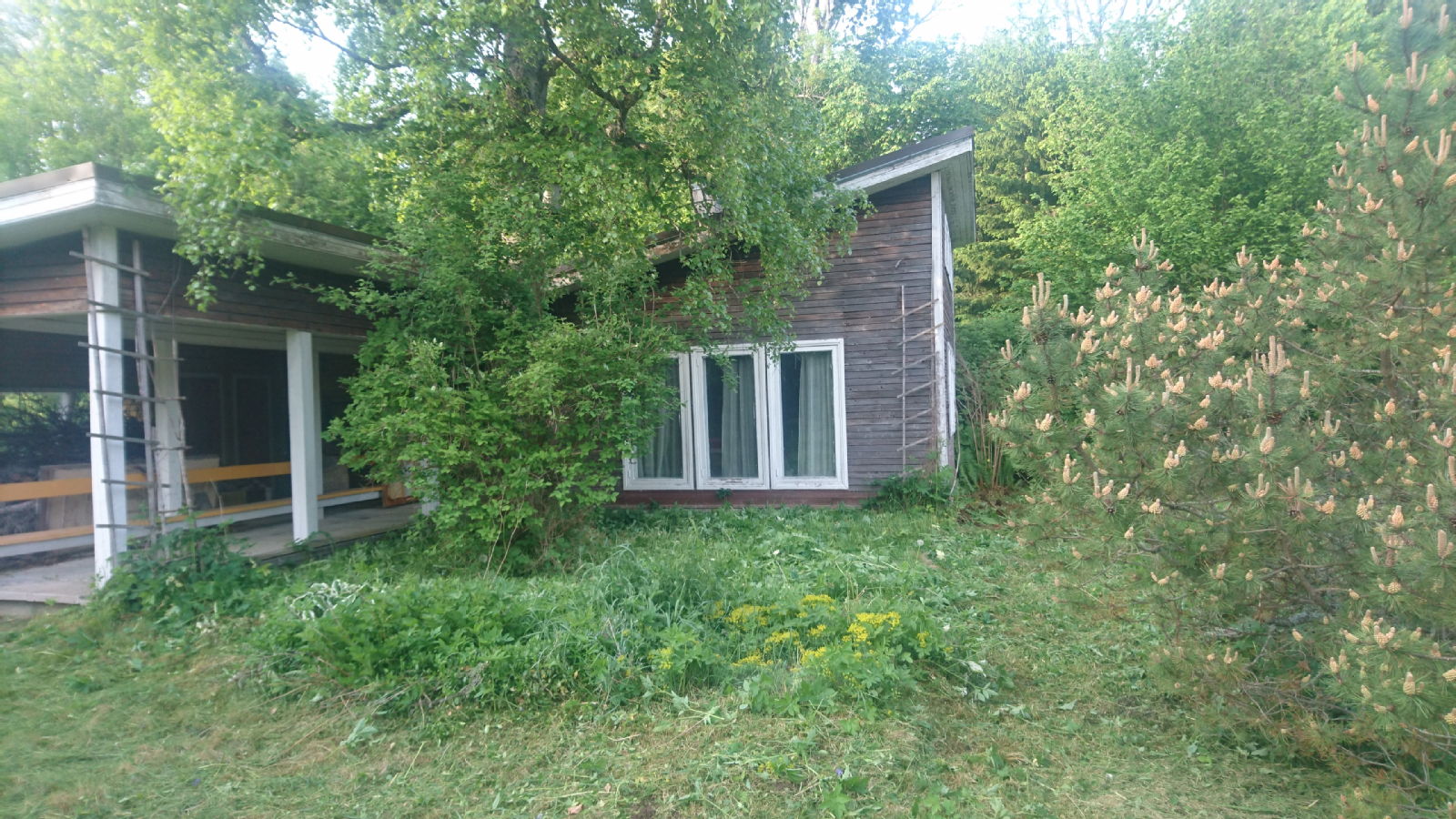 Puitmaja. Lintvundament. 1 kamin, saunas väike telliskivisein ja lagunenud betoonpõrand, plekkatus.