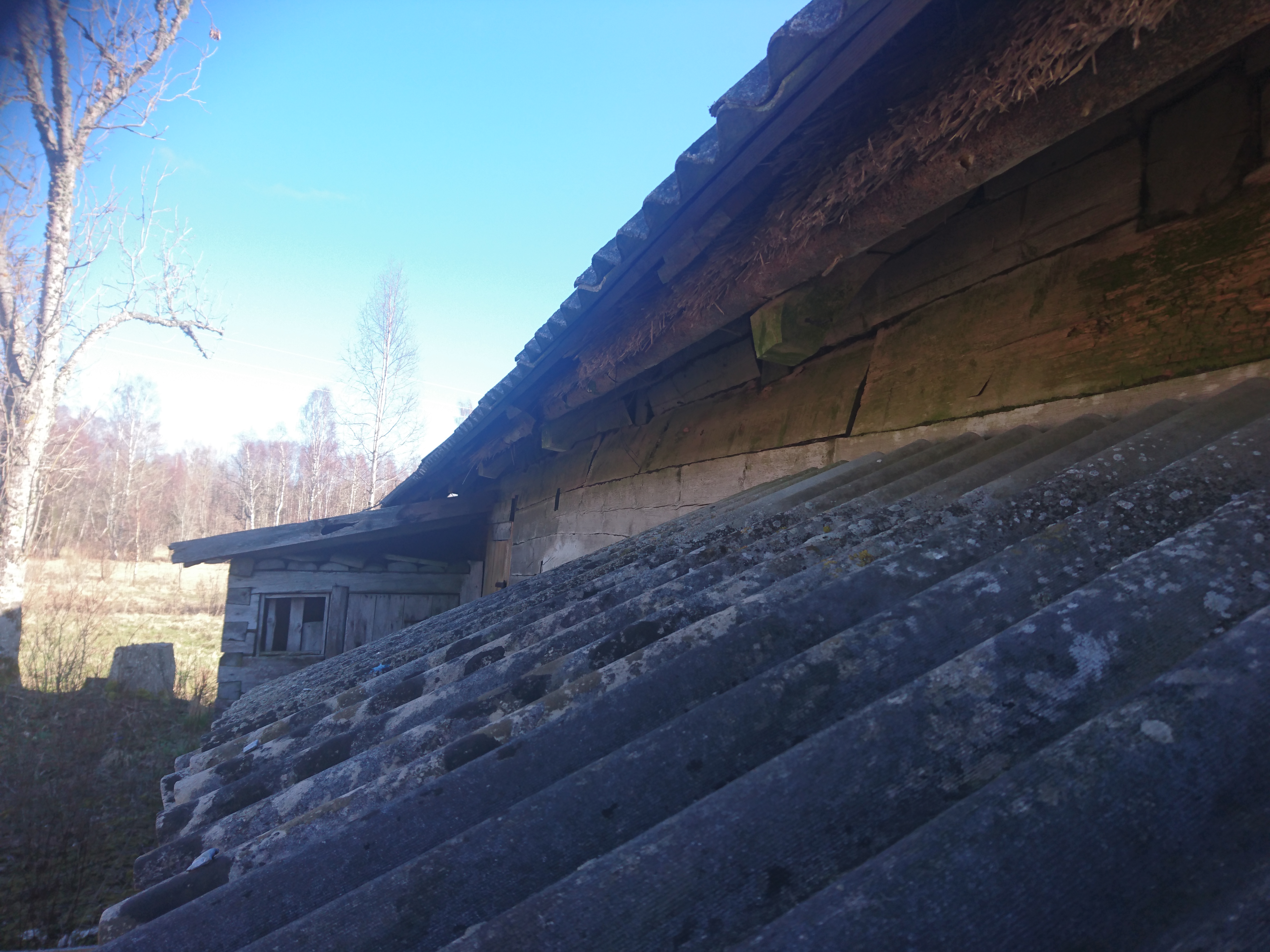 Olemasoleva eemaldamine kuni sarikateni.Sarikate rihtimine,kiletamine,roov ja uus eterniit./100 ruutu/Harjapleki ja viilulaudade panek.