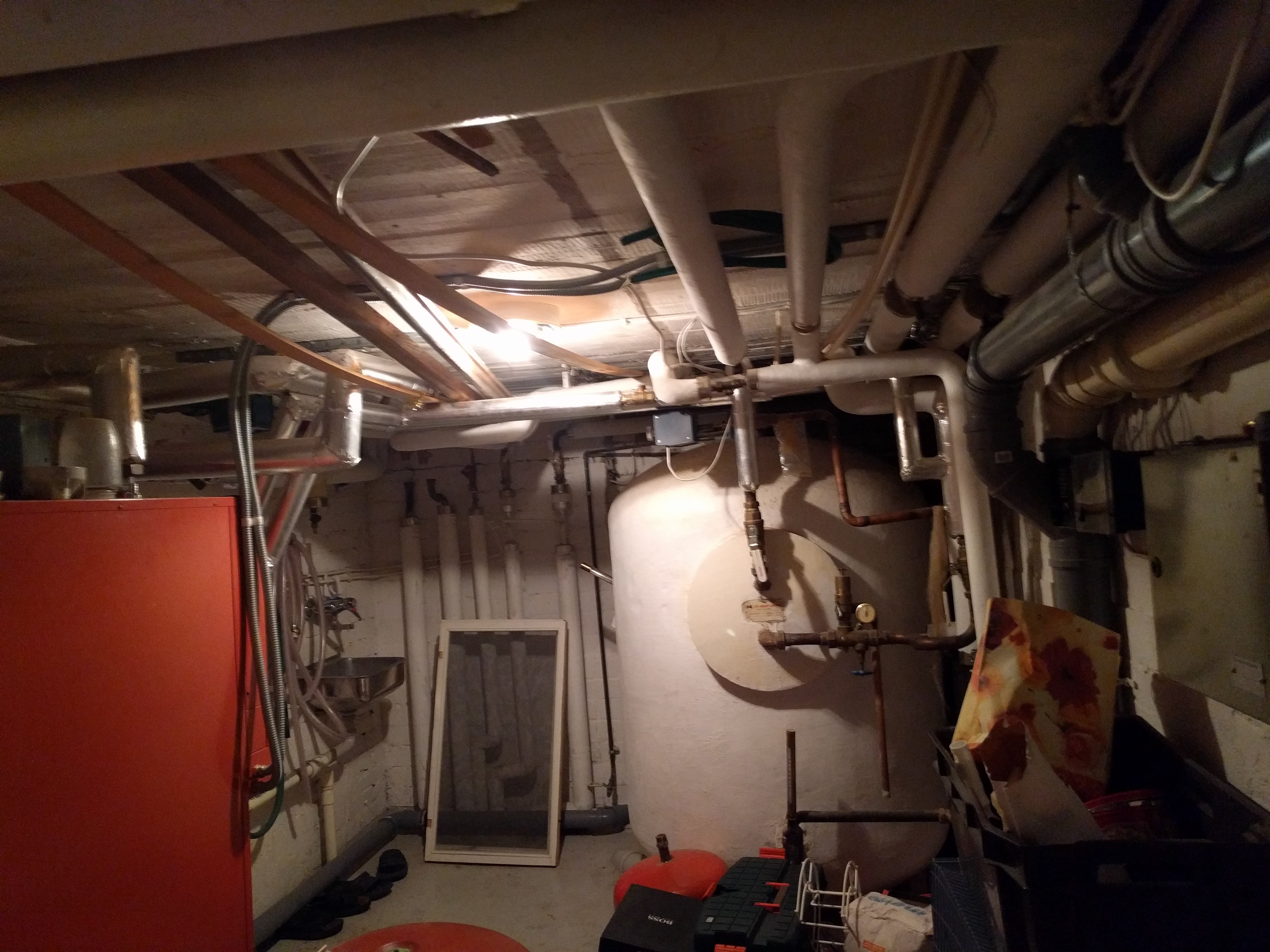 Tarvis oleks eemaldada asbest torude ümbert elumaja keldrist (piltidel ja videol olevad valged torud). Samuti on tarvis eemaldada sooja vee katel (pildil olev suur valge tünn - tünni taga on kinnimüüritud ukseava, mis tuleb lahti lõhkuda ning hiljem uuesti kinni müürida). Kui asbest on eemaldatud tuleb see transportida vastavasse jäätmekäitlus paika.