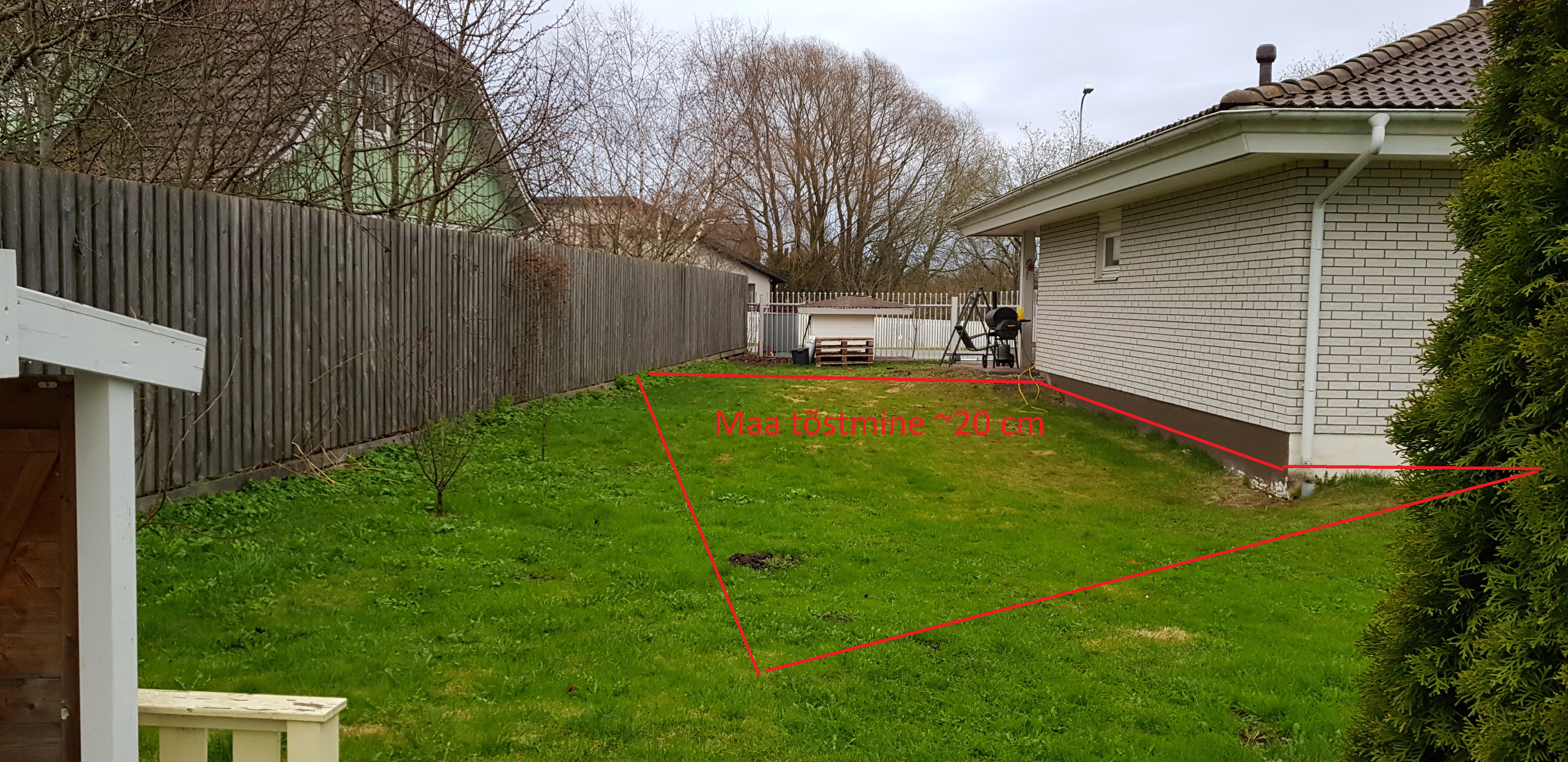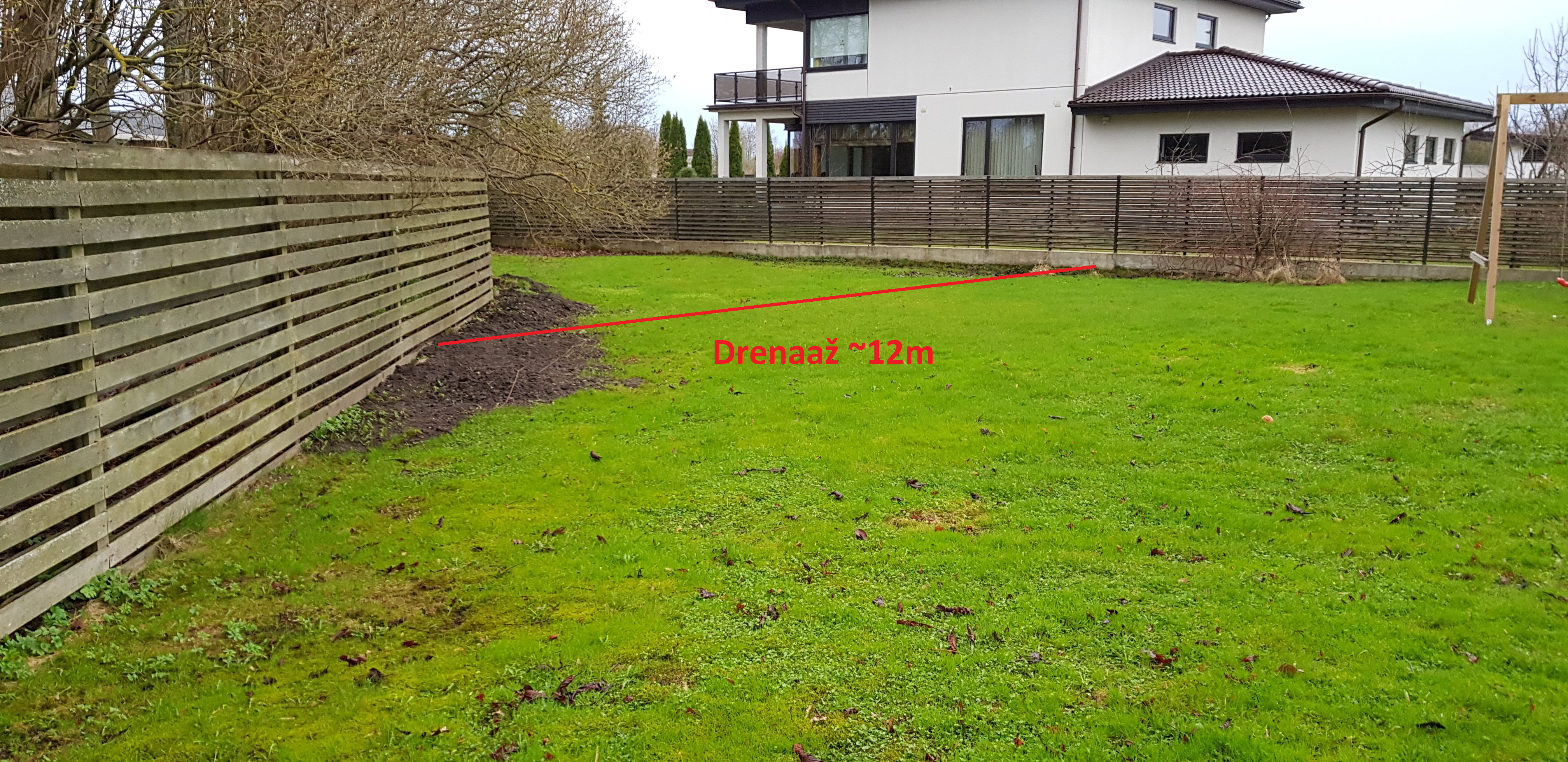 * ~12m drenaazi paigaldus. Drenaaž suunduks kruntide piiril olevasse kraavi (kohe aia taga) (drenaazi asukoht pildil)
