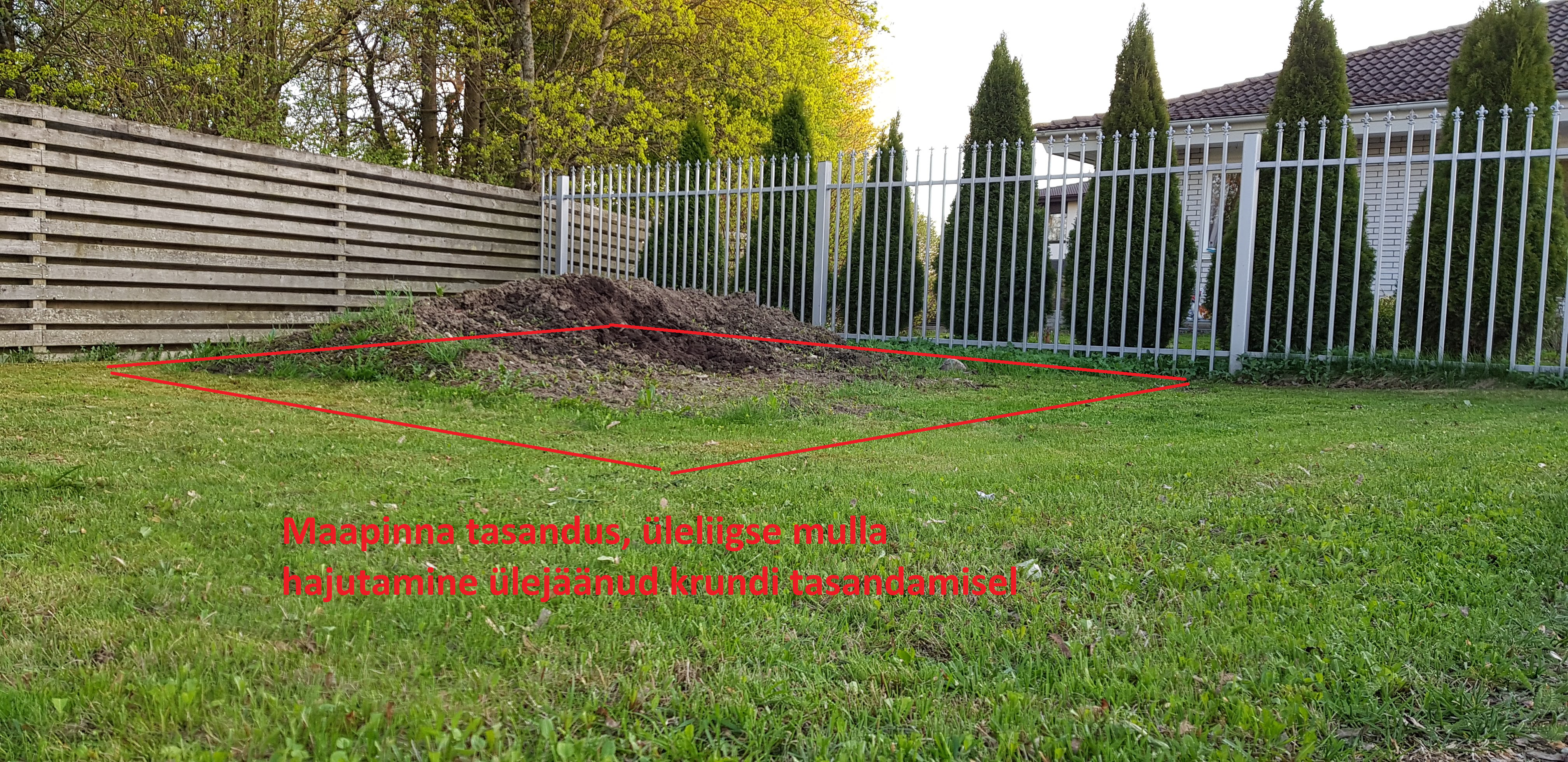 * väikese mullahunniku tasandus, selle ülejäänud krundil hajutamine (ala pildil)