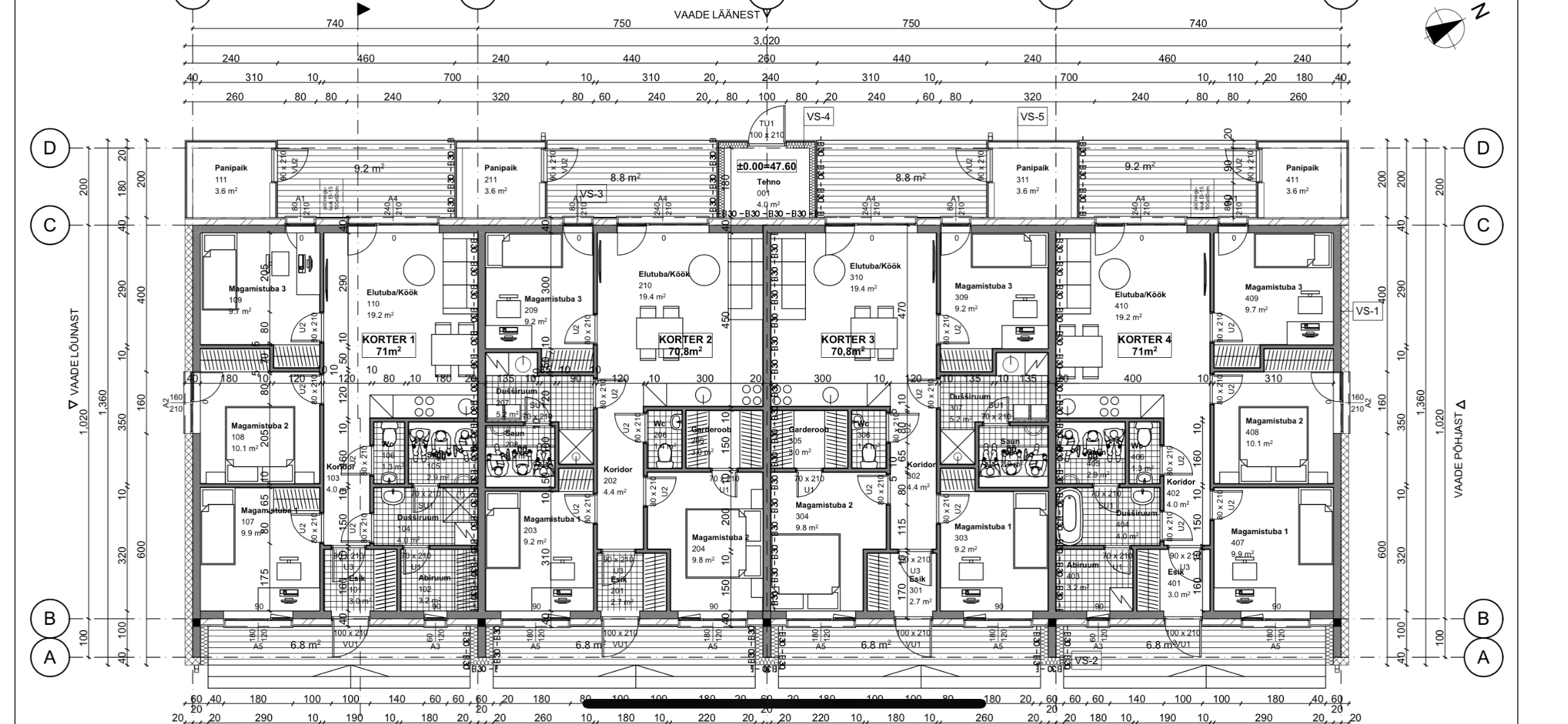 Kokku 4 panipaiga 3,6m2 ühe suuruseks ja Tehnoruumi ehitus 4m2.