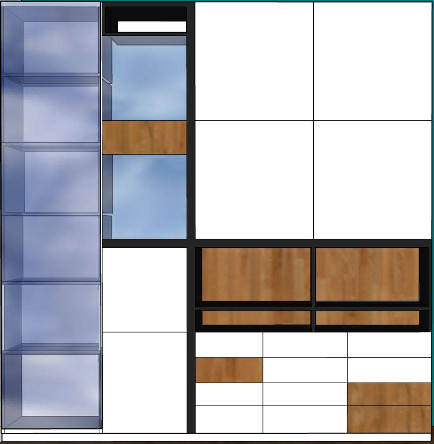 Materjal (matt)klaas (pildil sinisega vasakpoolne osa + 2 kapi ust) Puit (pikalamelliga kasekilp?) , valge peits + vb mõned tumedamad uksed