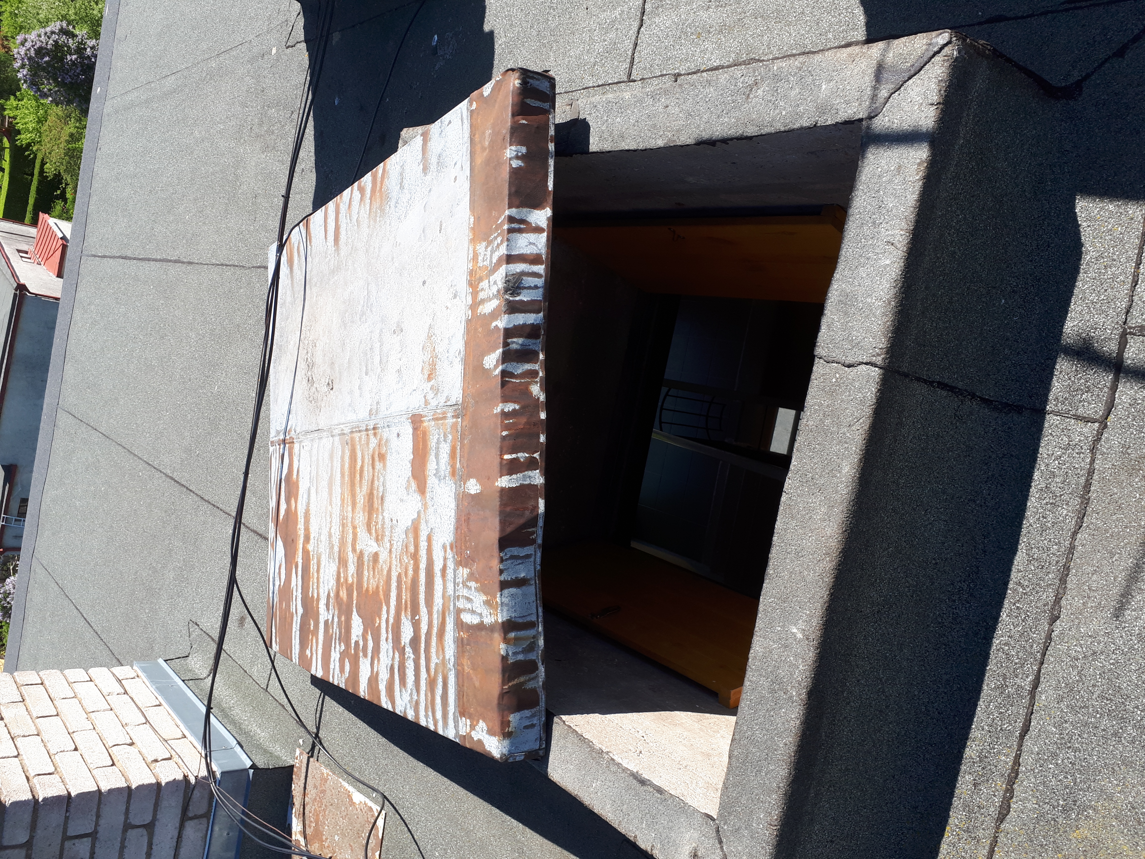 Lamekatusega korterelamul on vaja vahetada vihmaveesüsteem (kogumisrennid, torud). Täpsem info joonisel ja fotodel. Maja kõrgus 10 m, pikkus ca 50 m. Lisaks valmistada katuseluuk (ligikaudsed mõõdud 1200x1500).