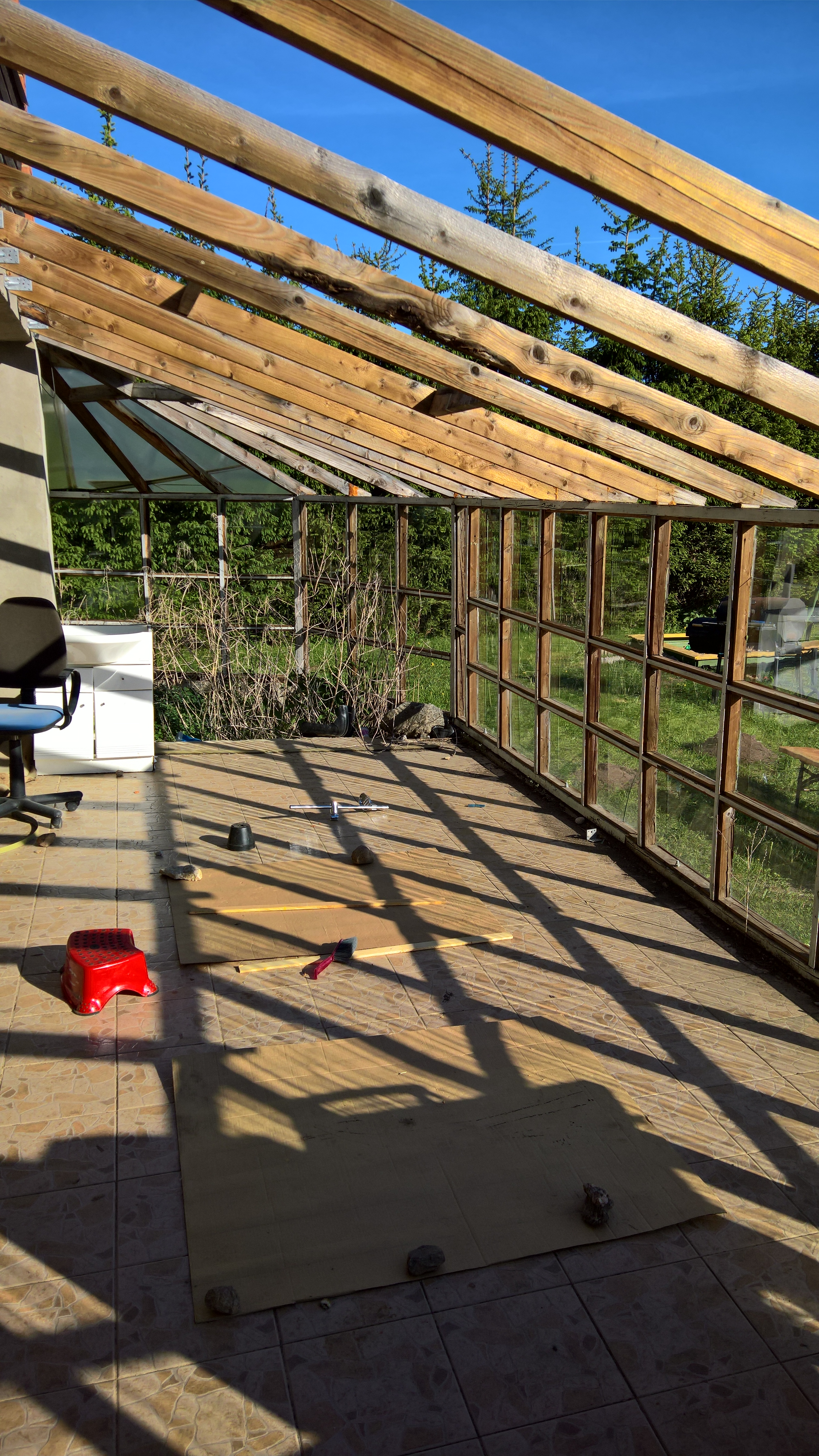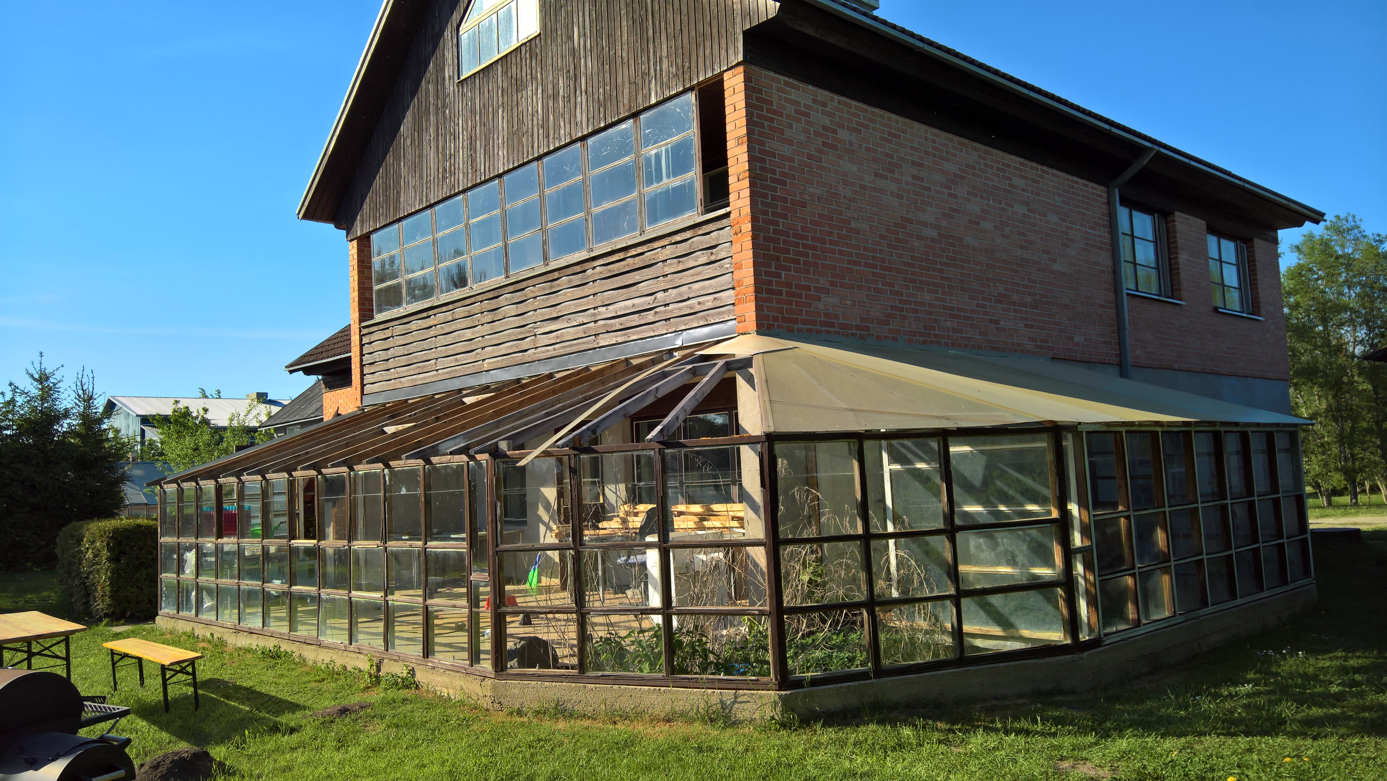 Olemasolev terass on ehitatud nagu kasvuhoone, klaasiga seinad, katus oli kihtplastplaat. Umbselt kinnine ja suvel sees ca 65*C sooja. Ruum ei ole kasutatav terrassina.
