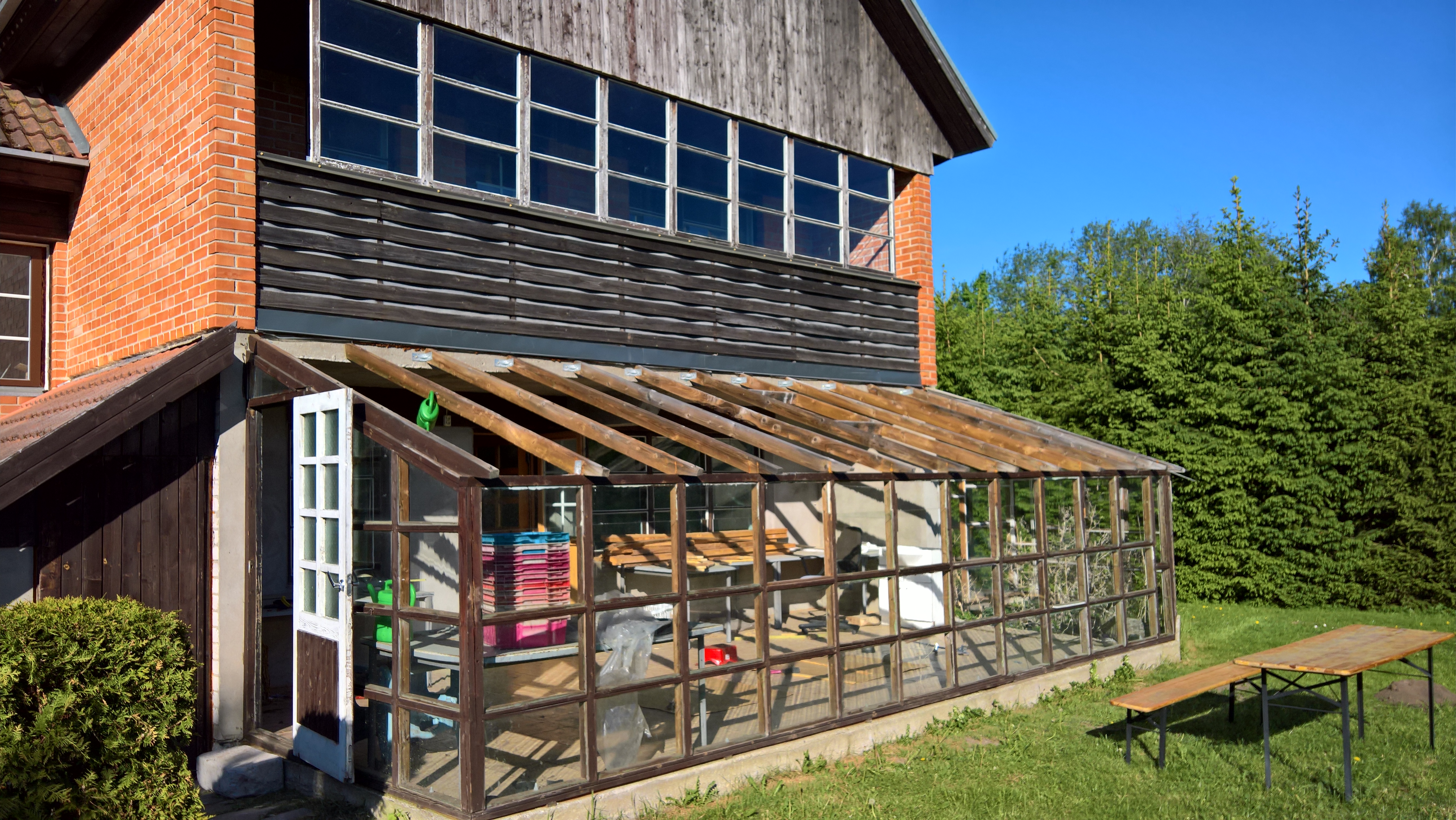 Seinad on praegu vana puitraamistik klaasidega - see tuleb lihtsat maha võtta ja paigaldada tugipostid terassikatuse ja teise korruse rõdu kandmiseks.