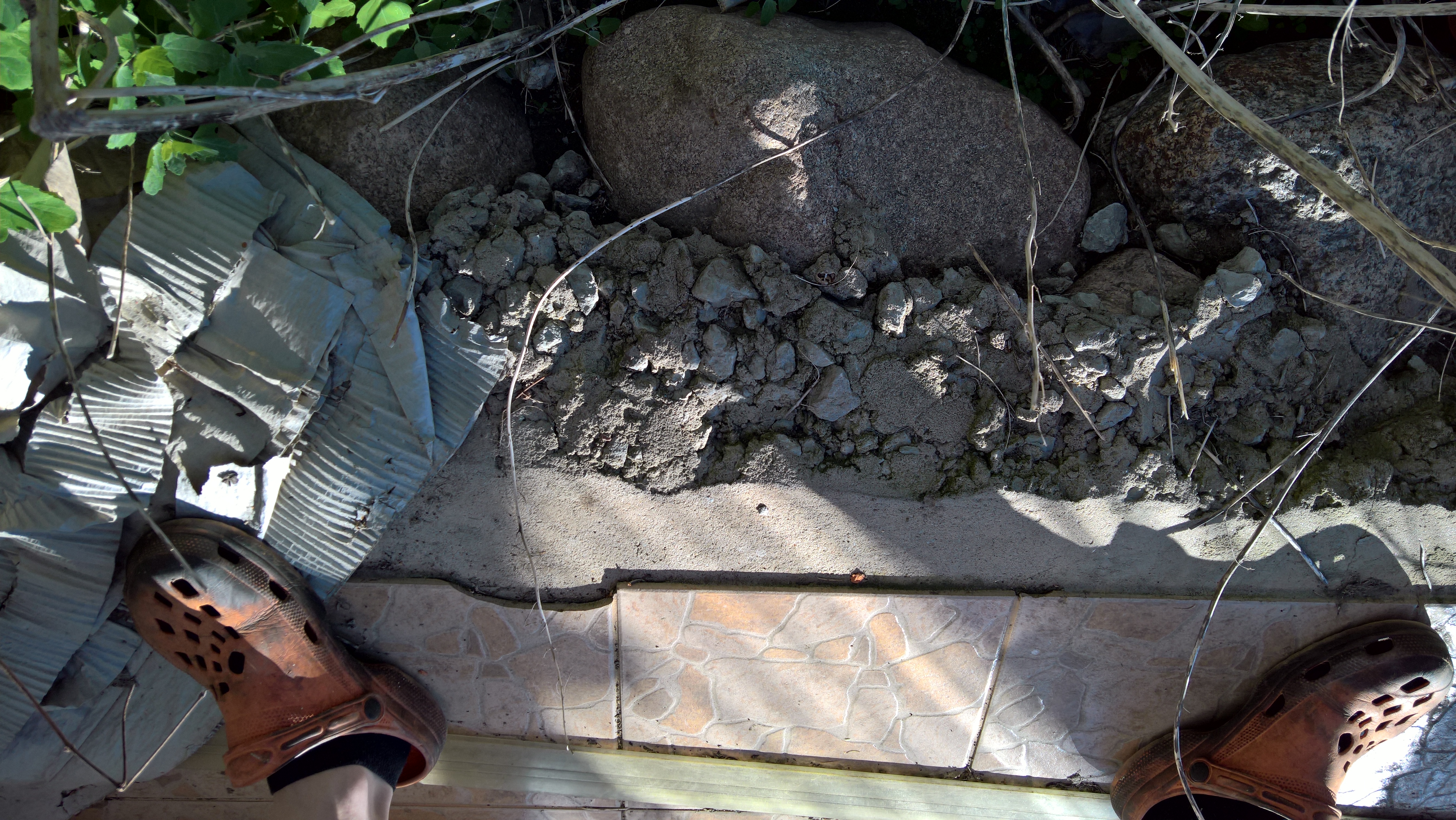 Praegu olemasoleva terassi põrand on valatud maakivide peale ja vajumise tõttu keskelt pragunenud. Kaetud siseruumi plaadiga, sipelgad on põranda servadesse teinud käigud ja põranda alla oma kodu - > vaja on põrand uuesti tihkeks valada ja katta külmakindla plaadiga.