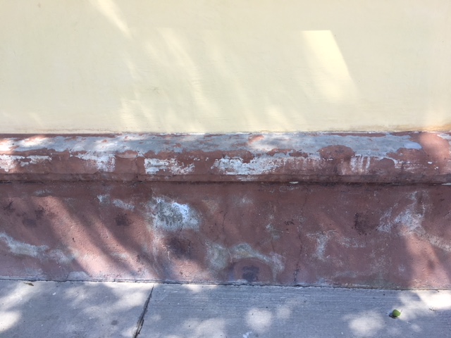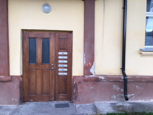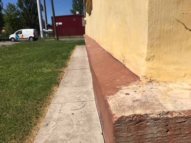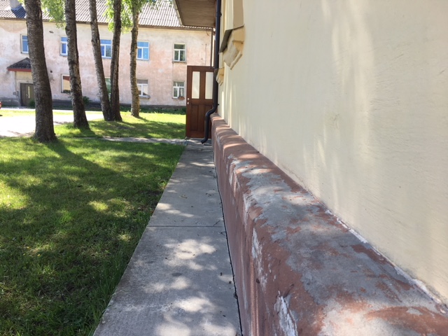 Fassaadi remont on tehtud 10 aastat tagasi, tookord plekki ei paigaldatud ja vihmavesi on rikkunud sokli karniisi värvi ja paiguti on ka krohviosa maha kukkunud või lahti.