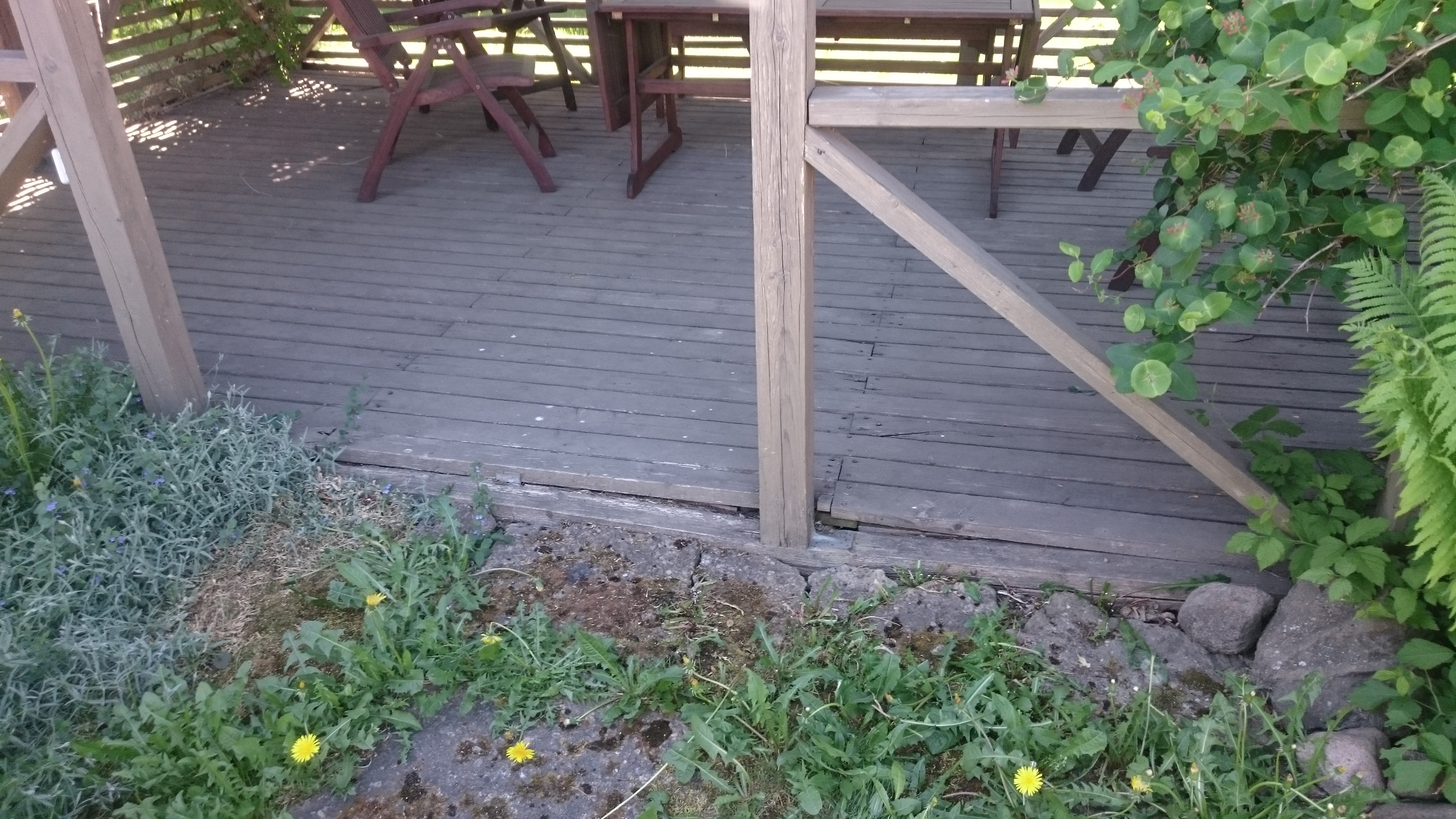 Alumine äär, mis on otseselt pinnase ja niiskusega kontaktis, kohati mädaneb. Vaja on toestada ja alumine äär välja vahetada. Seal on 100x100 pruss. Peaks panema samade mõõtmetega immutatud puidu. Seda vahetamist vajavat alumist äärt on umbes 60 m.