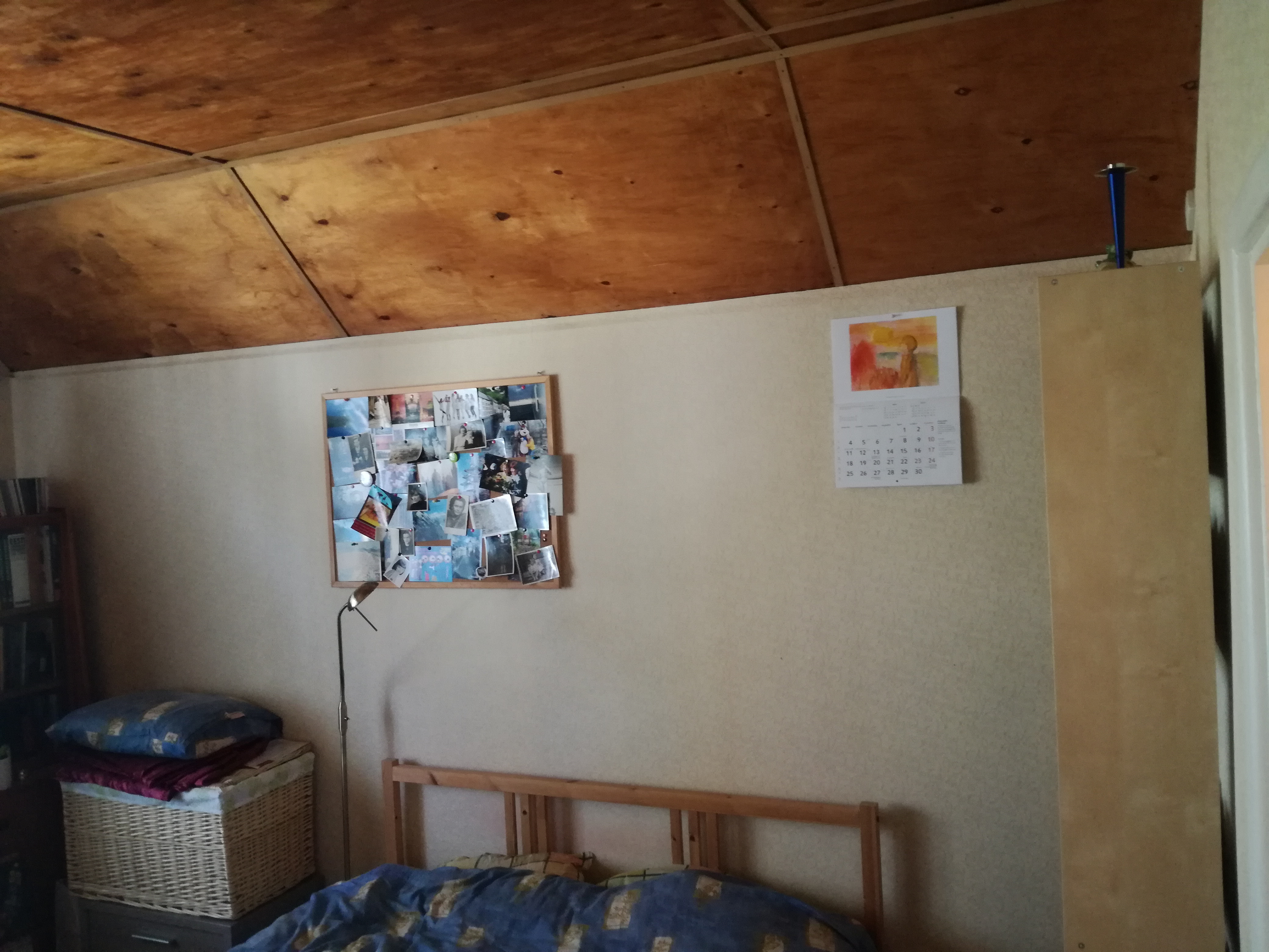 Viilkatuse mõlema viilu all on pööningud ja toaseinte kõrgus nende viilude all on umbes 2 m.