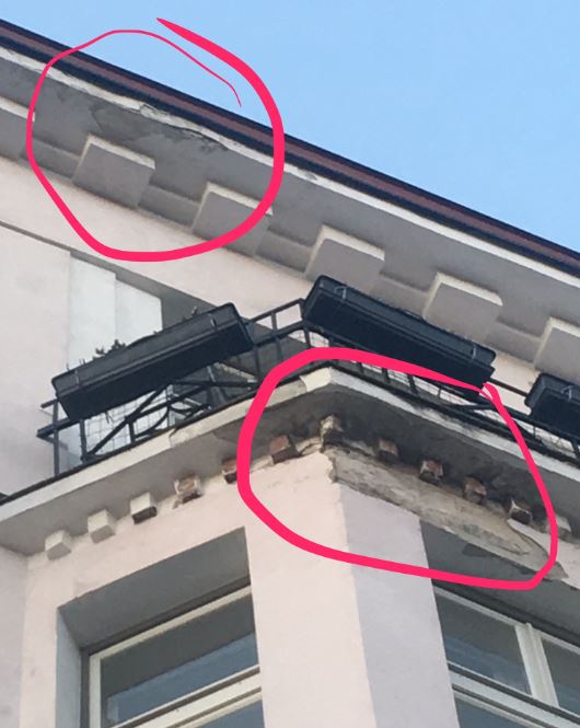 Probleem - kondentsvee kogunemine fassaadile, mis miinuskraadidega lõhub krohvi lahti. Enne krohvi paranduste tegemist renoveerida rõdu põrandaisolatsioon ja viimase korruse isolatsioon.