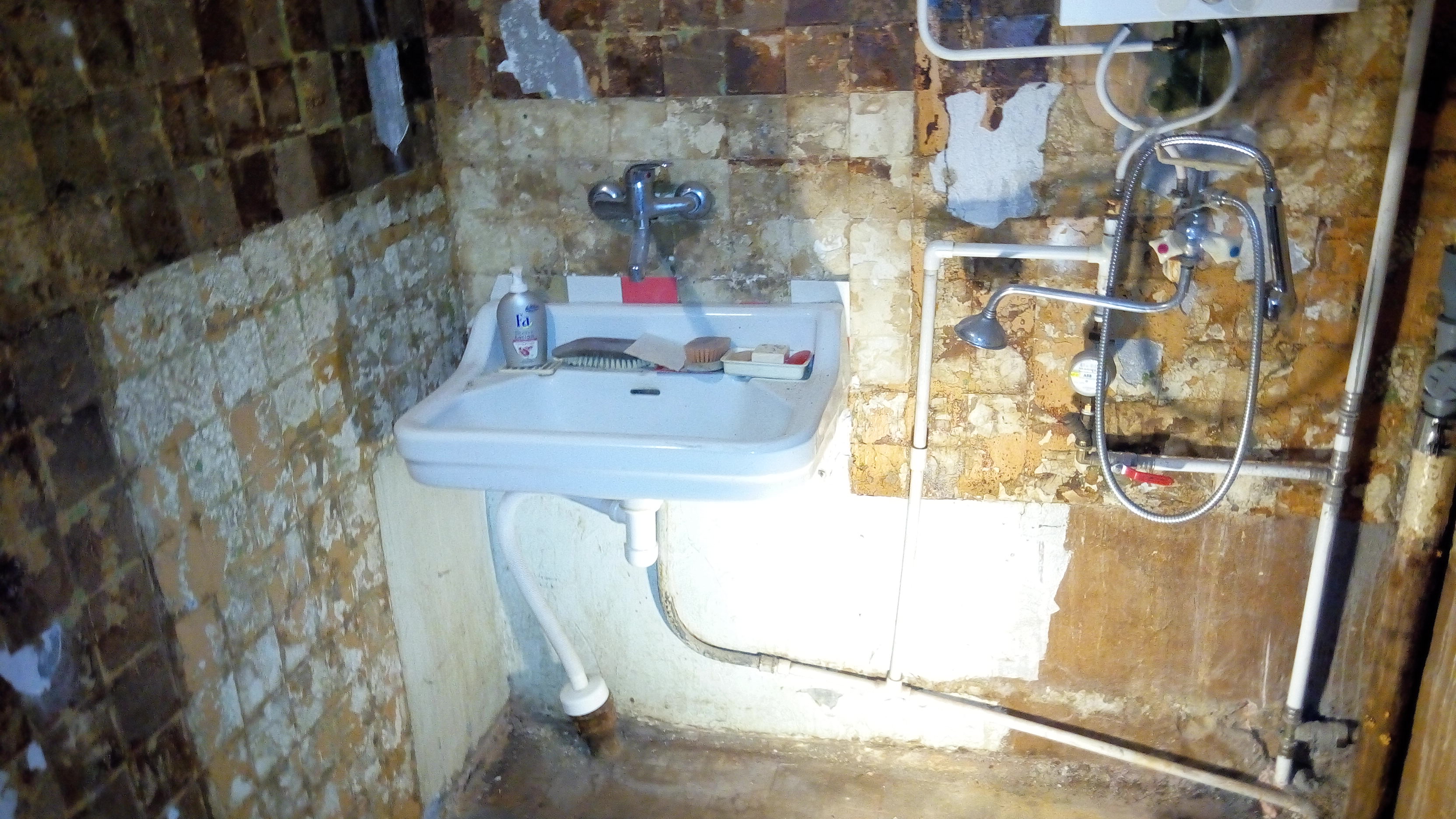 - Põrand samuti plaatida, vana vanni kanalisatsioonitoru nihutada võimalikult gaasiboileriga seina poole, teha sinna kraanikausi äravooli toruühendus ja äravoolu trapp. Praeguse kraanikausi kanalisatsioonitoruga ühendada dushikabiini ja köögivalamu kanalisatsioonitoru.