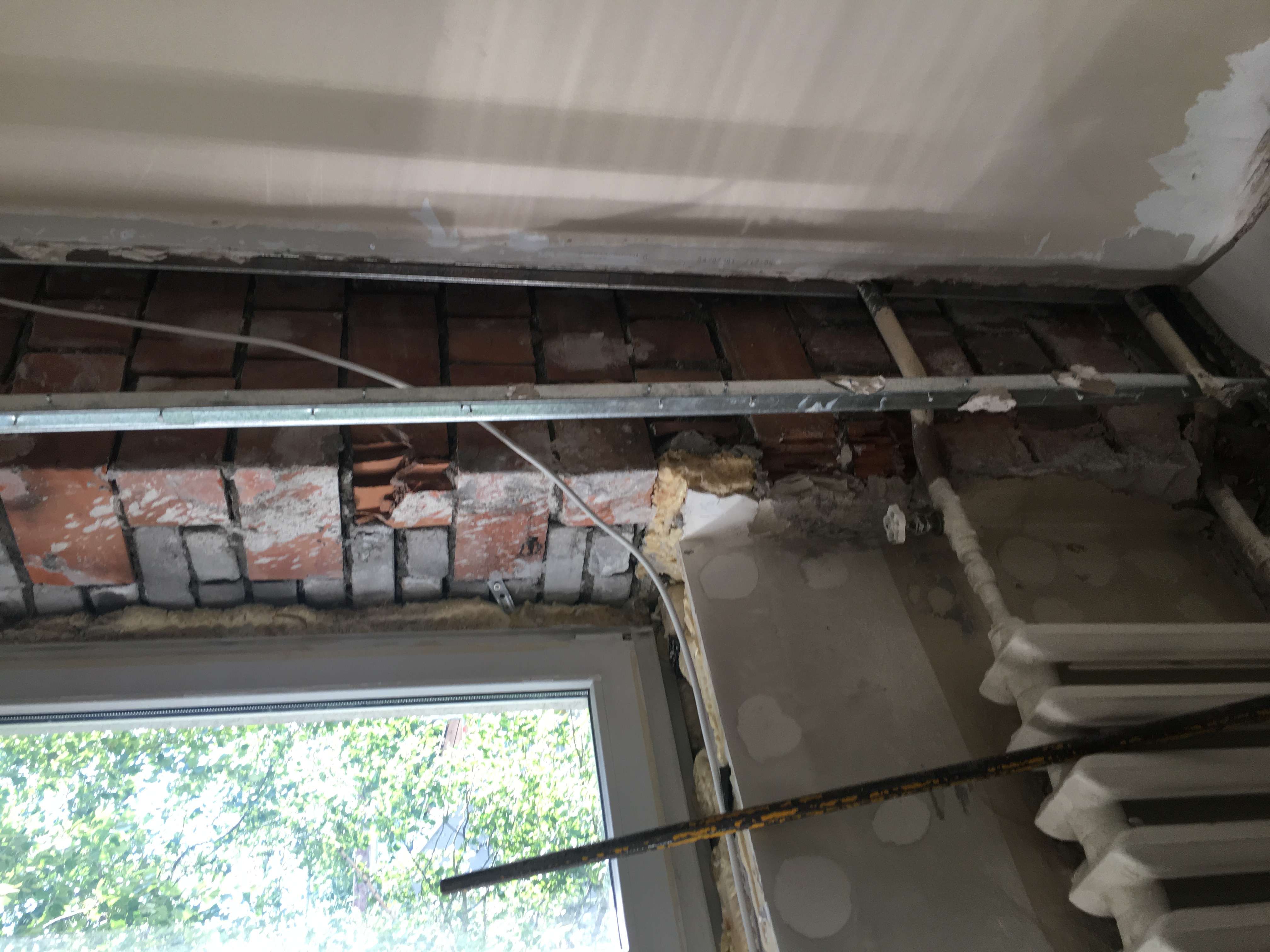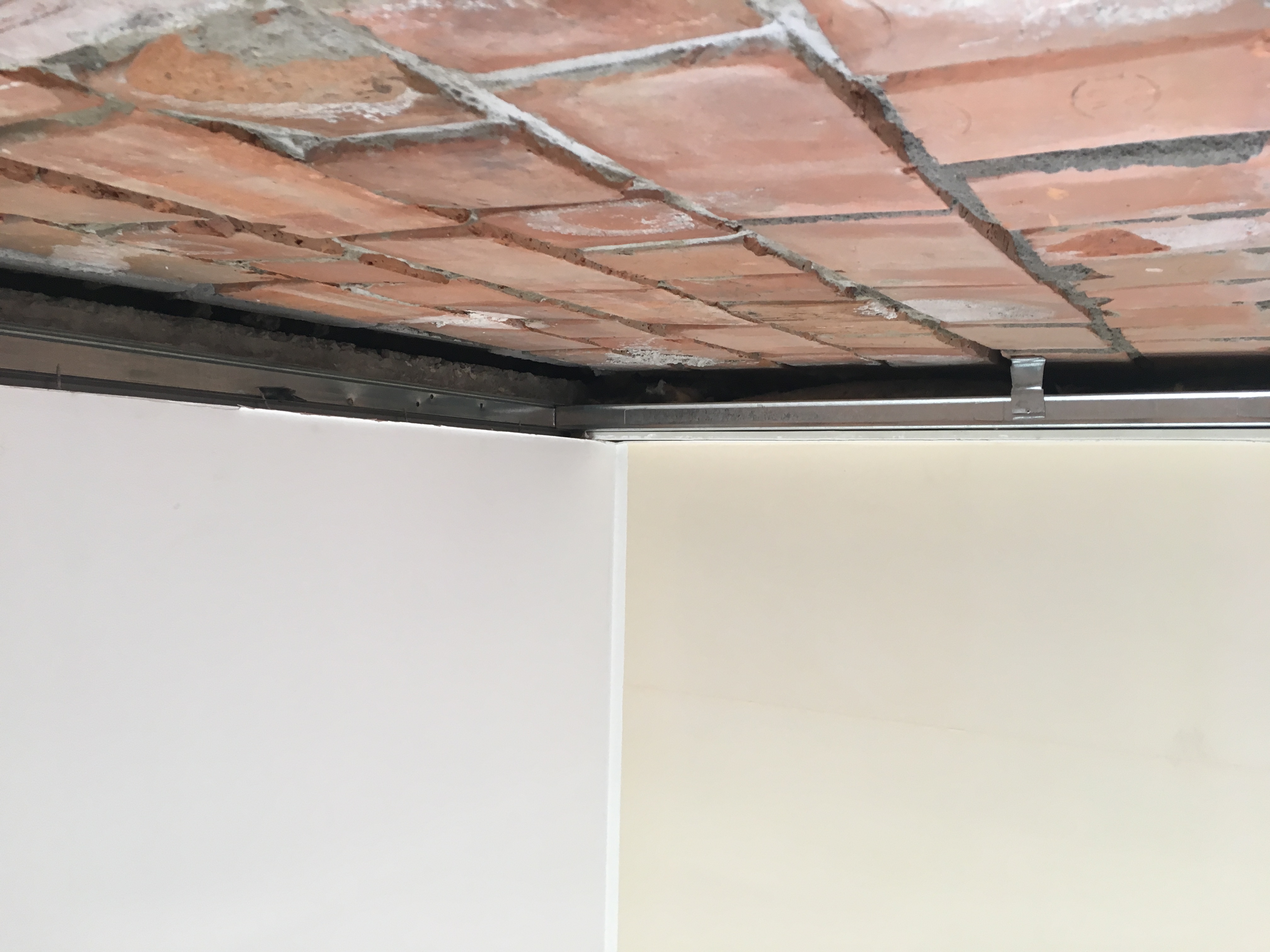 Kuna välisseina kips sai eemaldatud, on tekkinud lae ja seina vahel tühimik ning lagi on osaliselt toestamata. Soov oleks lage seinani pikendada, et see vahe kaoks - kas kipsiriba või lae osalise eemaldamise teel kõigis kolmes toas. PS! pildid on vaid kahest toast, kuna viimases on kips eemaldamata.