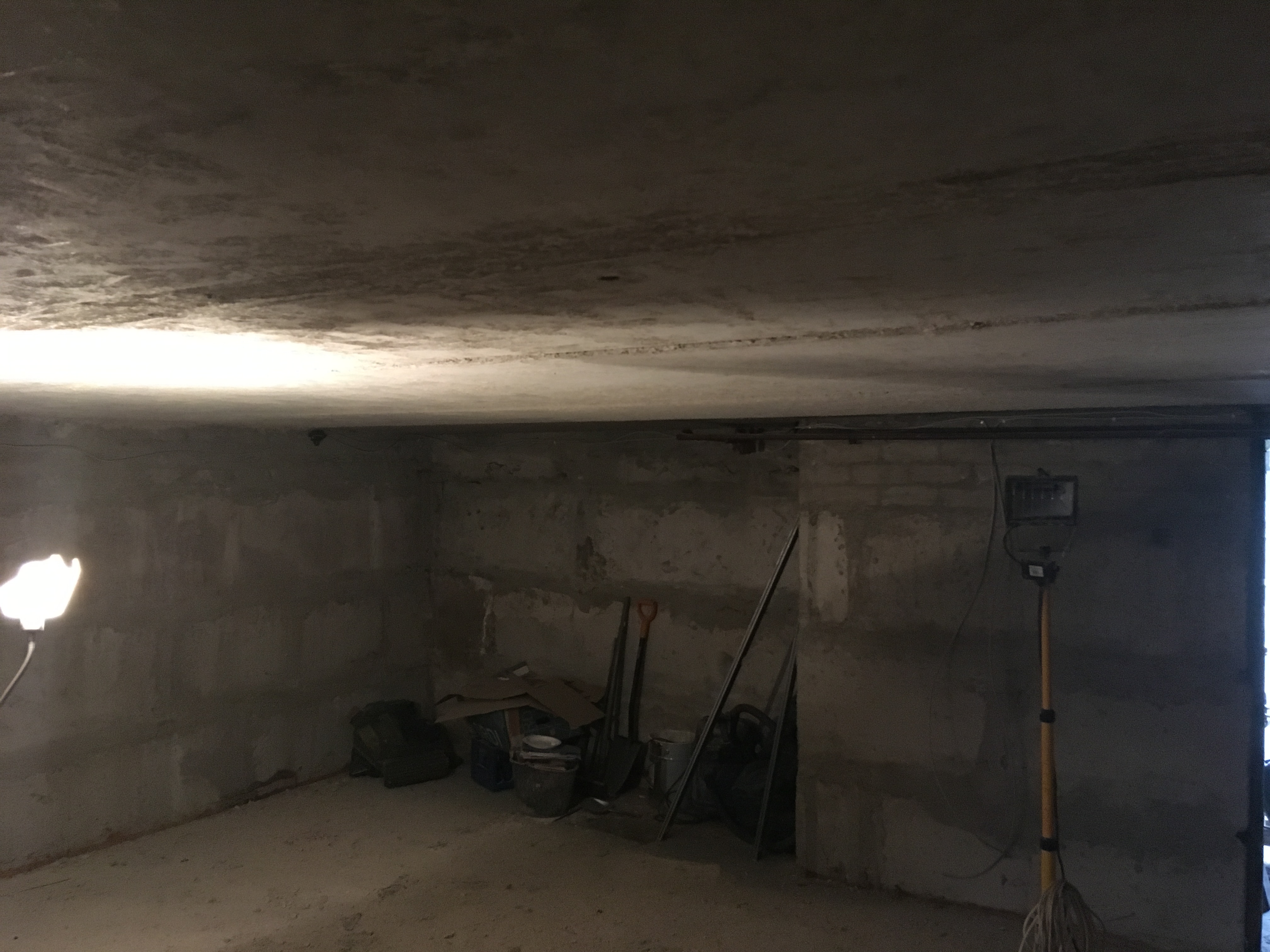 Lae pind 5,6mx4,9m. Seintele ülekatet teha ei ole vaja. Laepaneelid olid varem kipsipahtliga krohvitud, lõviosa pahtlist on laest ära võetud, pahtel tuleb laest hõlpsasti lihvides ära.