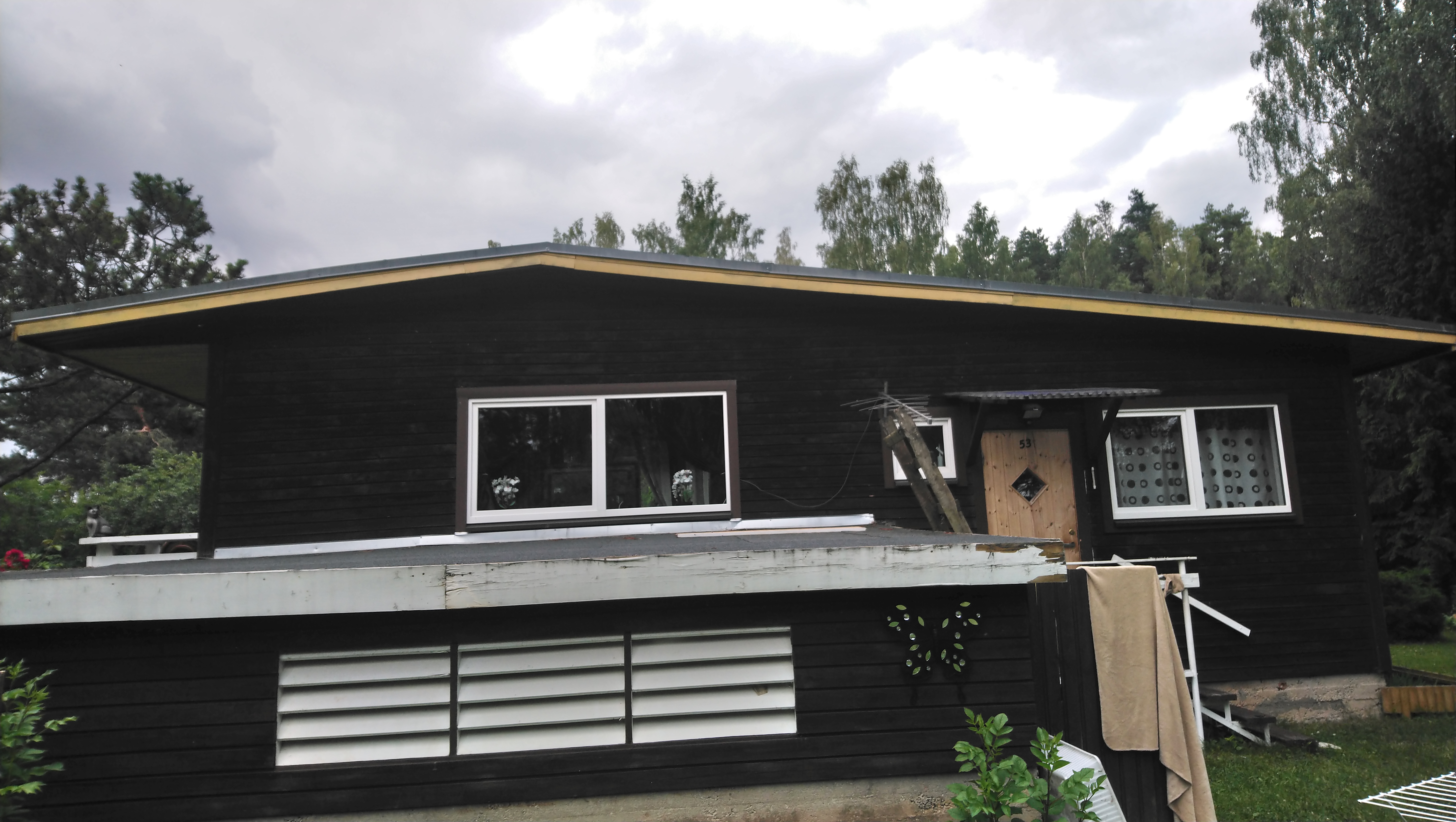 Hetkel on peal ruberoid katus mis on kohati mõradega ja suurema vihmaga laseb läbi.