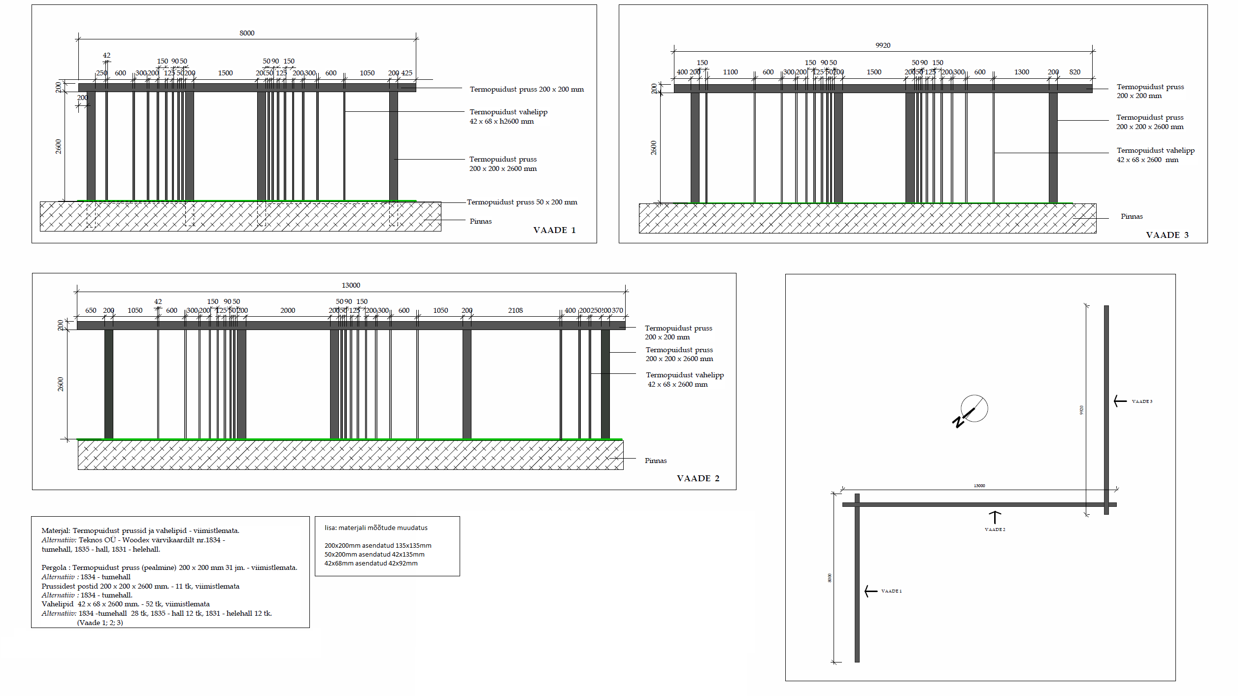 Lisas joonise põhjal pergola/vaheseina ehitus (viimistluseta).