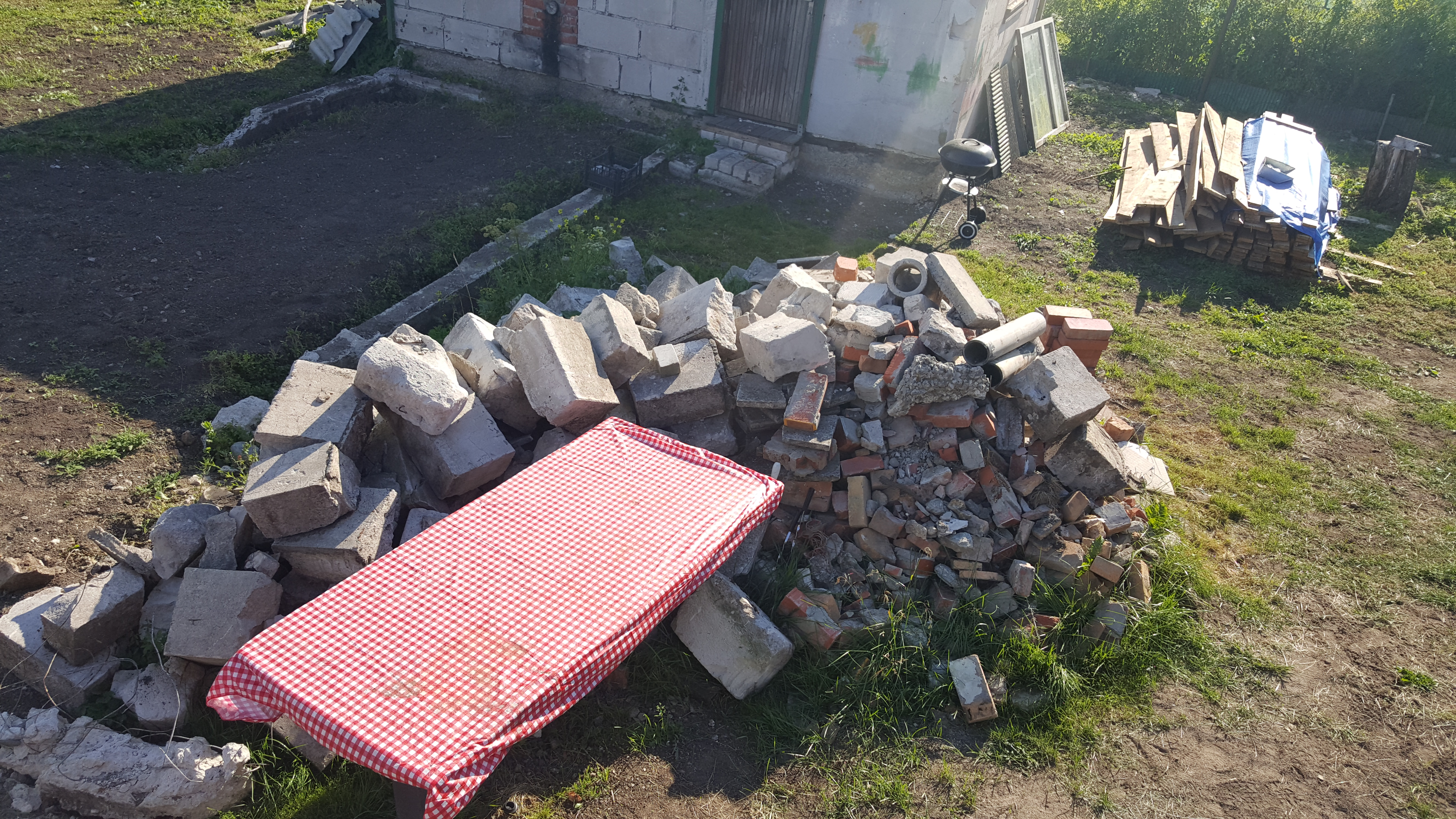 Vaja ära vedada hunnik erimõõdus telliseid ja kivi.