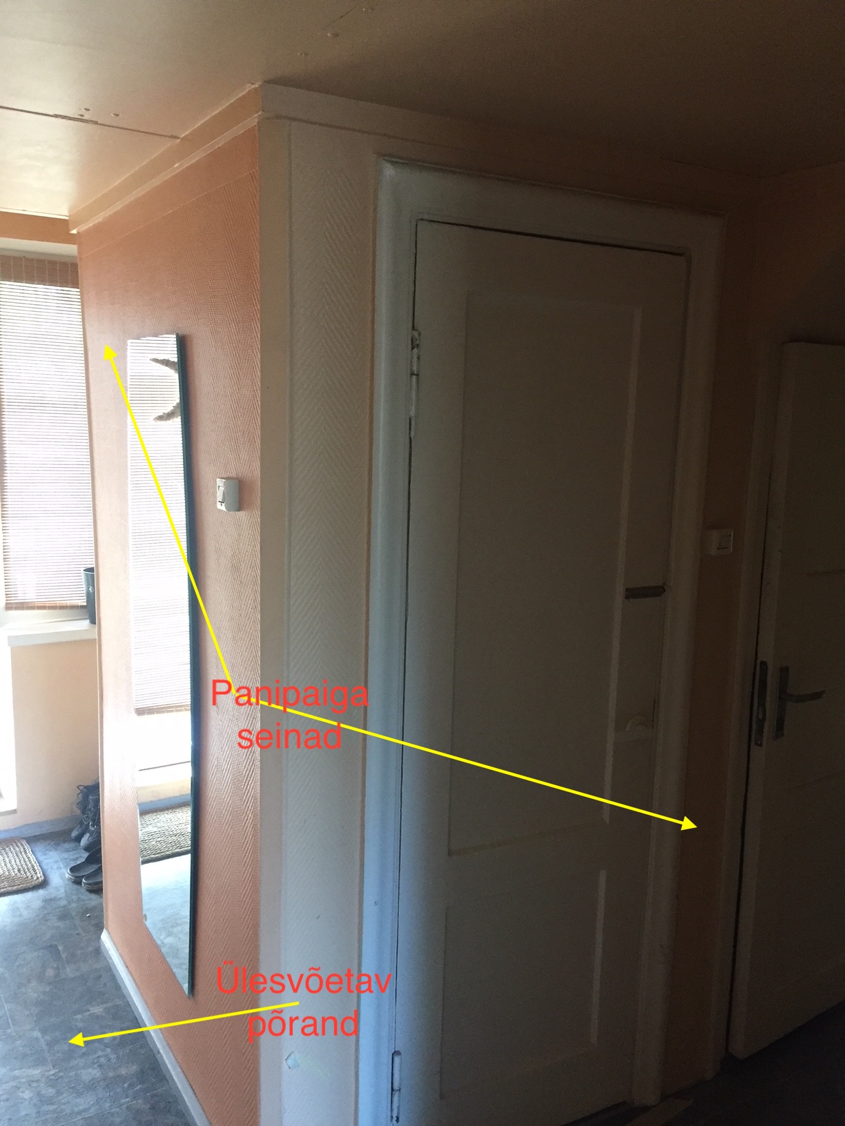 Olemasolevas ruumis 11 ruutmeetrit on panipaik-WC 6,5 ruutmeetrit. Panipaik-WC vaja välja lammutada, vahesein 1,7 meetrit välja lammutada. Olemasolev puitramistikul põrand ja puidust trepp II-le korrusele välja lammutada. Seintelt vana papp eemaldada,paigaldada kips. Põranda esimene kiht on paneelid,millele paigaldada puidust sõrestik soojustada, puitlaastplaat peale ja sinna veel laminaat. Olemasolev vana el. kilp renoveerida ja teise kohta paigaldada.